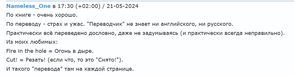 >>568135 → Х-У-Е-Т-А Начем с того, что первая глава настолько хуевая, что я чуть было сходу не дропнул. Идея того, что чел находится сейчас, а книга - рассказ о том, как до этого дошло, достаточно часто используется. Можно было бы подсмотреть как именитые авторы делают. Но чел написал сам и сделал это крайне хуево. Просто сходу взял и в пару страниц вывалил какой гг охуенный. И вот он и вояка знатный, там служил, тут служил, тех пиздил, этих пиздил, всем видами вооружения умеет пользоваться в совершенстве, там был, тут был, на всех языках разговаривает, пишет, читает, считает, философствует. Школьник бы постеснялся такое придумывать. Автор явный немцедрочер. За каким-то хуем использует немецкие термины, названия, хотя никакого смысла в этом нет. Вот он пишет барон вывел кавалерию, копейщиков и ландскнехтов. Я догадался кто это. Но явно про это никак не написано, более того, за всю книгу слово используется менее десяти раз и никакого дополнительного смысла не несет. Можно было написать - пехотинец, и смысла не убавилось бы. И так со всем. Вот он пишет - надо судить какого-то хуесоса, вам вызвать ландфогта? Опять слово используется пять раз за книгу, никакого дополнительного смысла не несет. Нет в книге никаких придворных интриг и тд, чтобы разбрасываться специфическими терминами. Тем более большинство должностей и так стандартные, типа граф, барон, сержант. Можно было так же использовать слово - наместник, и ничего бы не убыло. А так это просто режет глаза, как если бы я сейчас использовал инглиш слова. Сюда же идет и то, как он в самом начале зачем-то описывает, как воин надевает доспех, подробно перечисляя разные элементы экипировки. И на этом одном разе все это и заканчивается. Нахуй было меня завлекать может быть какими-то нюансами рыцарского дела, если потом это никак не используется? Далее, все дело происходит в немецкой глуши среди холопов, да и остальные на уровне. Соотвественно можно понять простецкую прямую речь. Но от всего остального на самом деле веет таким же душком. То есть, это просто уровень автора. Книга как будто для людей с одной извилиной. Такие продают по 100р где-нибудь на вокзале. Особенно смешно было, как в начале книги они там катались часто туда сюда и каждый раз автор использовал одинаковую структуру. Едут они в замок, две строчки диалога, а потом фраза - вот так за разговорами они доехали до замка. Через пару страниц - вот так за разговорами они доехали до трактира, и потом еще так же. Что касается сюжета, то он опять таки слишком простой. Нет никакой интриги, что это за нечто из рютте. Почти сразу все становится понятно, и все побочные сюжеты такие же простые и моментально решаемые. История не держит в напряжении, не создает каких-то моментов, из-за которых не оторваться, потому что хочешь узнать что там дальше. По сути книга больше выглядит как описание процесса - он поехал туда, он поговорил с тем, поехал обратно. Вот это поворот в конце книги тоже крайне вялый. Представьте историю, как я пошел в магазин за кефиром, а купил еще и кусок сыра. Гг крайне умелый, опытный, обо всем догадывается, а там где не догадался там из кустов появляется внезапно охуенно полезный помощник. Ни к кому у меня не возникло ни симпатии, ни наоборот. Все максимально вялые. Собственно, в книге вообще нет ничего интересного.