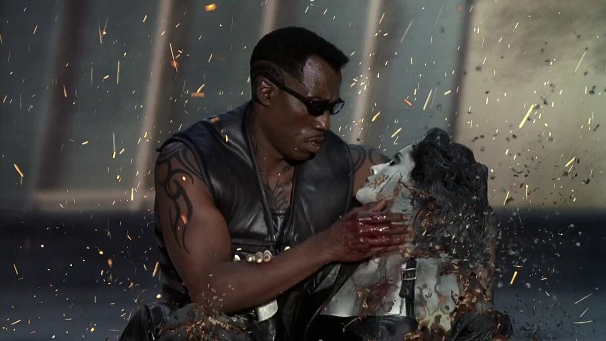 А вот Блейд не дампир, а результат обращение беременной женщины в вампира. Лично мне всегда нравился второй фильм, куда завезли драмы и романтики, а так же крутых лысых вампиров с жуткой пастью (все как дель Торо любит). А познакомился я с этим персонажем вообще по мультику про Человека-паука. Третий фильм не смотрите пацаны, там плохо реально всё. Уэсли Снайпс зазвездился и ударился в саботаж, а сейчас небось рад, что его позвали в качестве камео в "Дедпул и Росомаху". Но там и сценарий - херь полная.