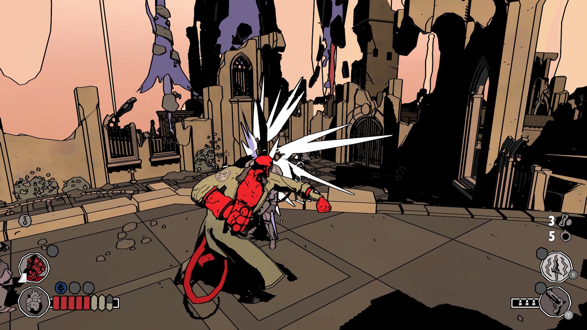 Еще по Хеллбою вышла два мультка "Меч штормов" и "Кровь и металл". Ну они просто норм. И игра Hellboy: Web of Wyrd. Ну там прикольный визуальный стиль, как в комиксах. Всё что хорошего можно про это сказать. Бегать по одинаковым коридорам и стукать одинаковых мобов очень скучно.