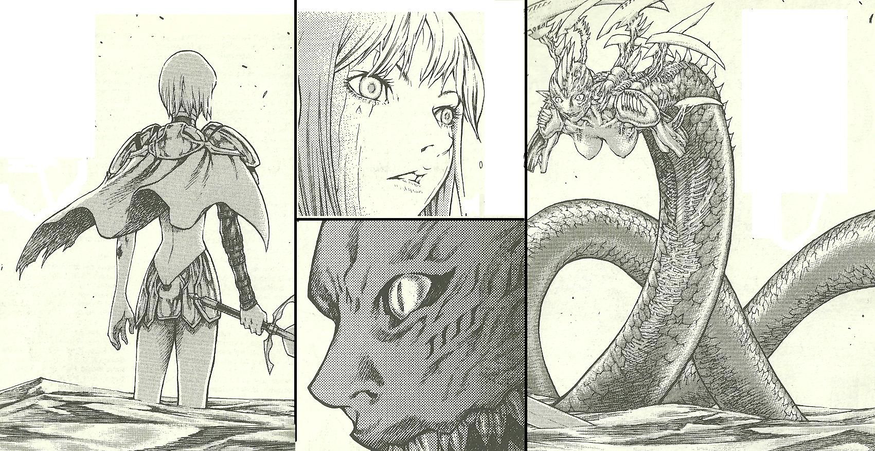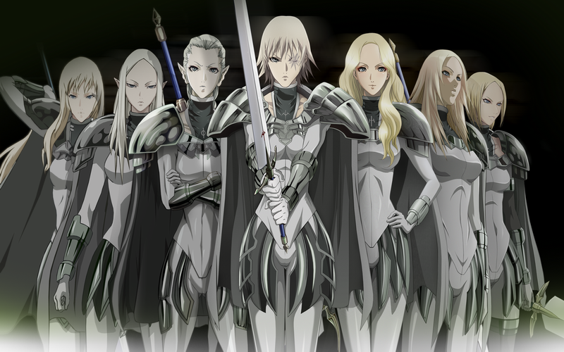 Клеймор - аниме (а потом и манга) подкупили тем, что "блин, ну это же как в Ведьмаке!" Троп - "охотник на чудовищ отчасти подобен чудовищу" здесь доведен по пределов Мадоки Красивые девахи с большими мечами рубят оборотней-людоедов, а потом всяких крутых огромных монстров которые получаются из охотников. Причем за свой труд берут немалые деньги учитывая раскрытия природы Организации и что все это испытательный полигон, выманивание у крестьян золотишка за охоту выглядит какой-то садисткой дичью Драмотично, пафосно, иногда сопливо, анимешный финал слит, манговый - требует продолжения в духе "Атаки Титанов"