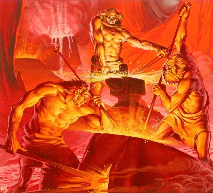 В том что циклопы - мифологические кузнецы божественного уровня, ничем не хуже скандинавских цвергов. Именно циклопы сковали молнии Зевса и другие полезные штуки. Если хочешь обоснуй, пусть у них будут глаза микроскопы, способные увидеть малейший изъян изделия.