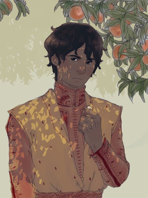 Viserys, was her first thought the next time she paused, but a second glance told her otherwise. The man had her brother’s hair, but he was taller, and his eyes were a dark indigo rather than lilac. “Aegon,” he said to a woman nursing a newborn babe in a great wooden bed. “What better name for a king?” “Will you make a song for him?” the woman asked. “He has a song,” the man replied. “He is the prince that was promised, and his is the song of ice and fire.” He looked up when he said it and his eyes met Dany’s, and it seemed as if he saw her standing there beyond the door. “There must be one more,” he said, though whether he was speaking to her or the woman in the bed she could not say. “The dragon has three heads.” He went to the window seat, picked up a harp, and ran his fingers lightly over its silvery strings. Sweet sadness filled the room as man and wife and babe faded like the morning mist, only the music lingering behind to speed her on her way.