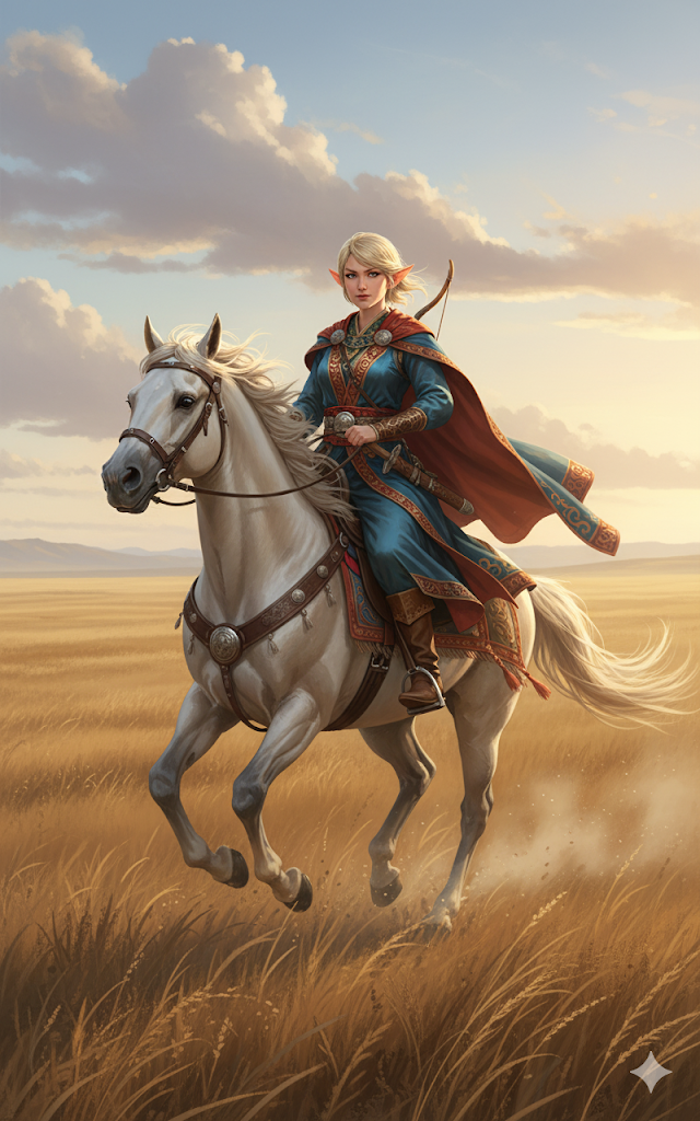 1) Темная эльфийская дроу-танцовщица. 2) Бастард-полуэльф королевской крови, поставленный на вассальное государство эльфов под властью людей. 3) Степные эльфы. 4) Кочевники-эльфы. Ремесленники, музыканты и маги, они предлагают свои услуги в человеческих землях, называя себя Лайннур, Свободный народ, в отличие от других эльфов, живущих под властью людей.