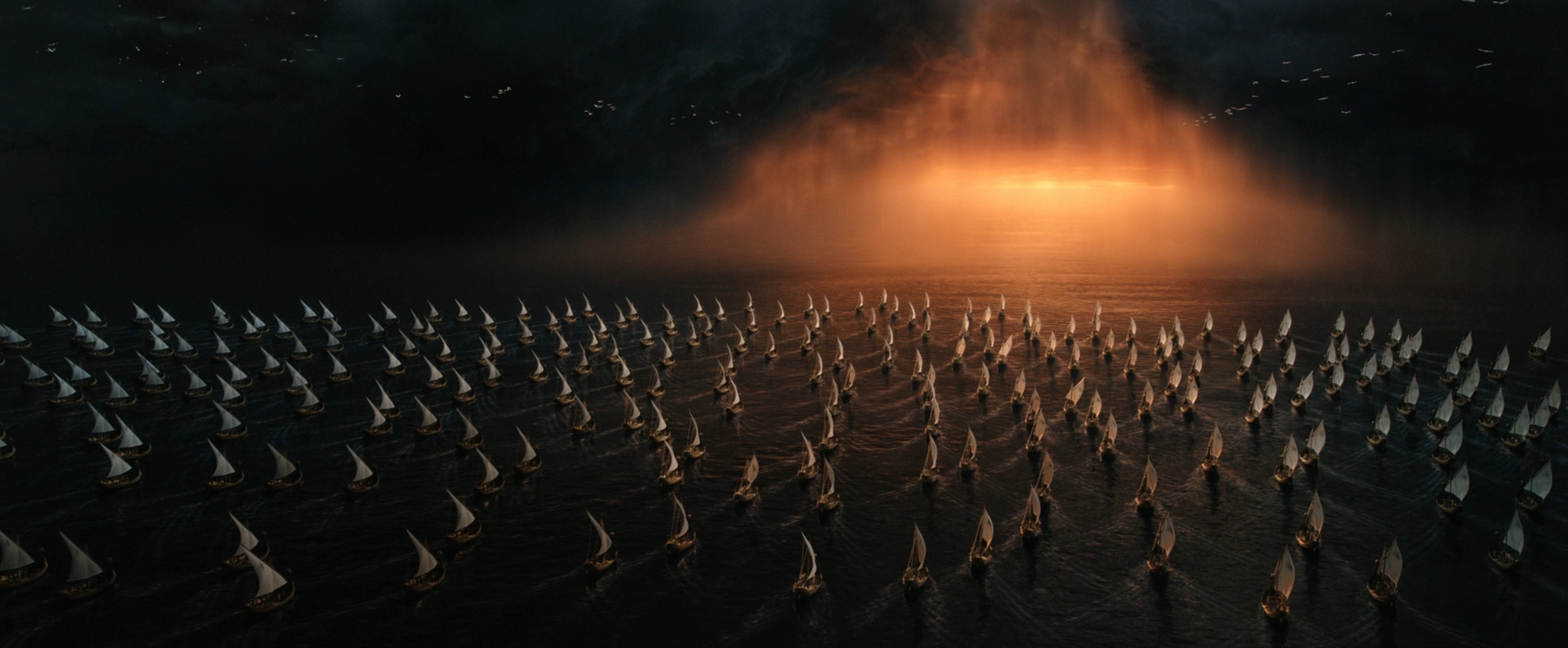 Вала Оромэ встречает новопробудившихся эльфов, 1085 год Древ. Война Гнева и падение Ангбанда, 545—587 годы Солнца. Война Последнего Союза, 3429—3441 гг. В. Э. Последние Белые Корабли эльфов уходят за Море по Прямому Пути.