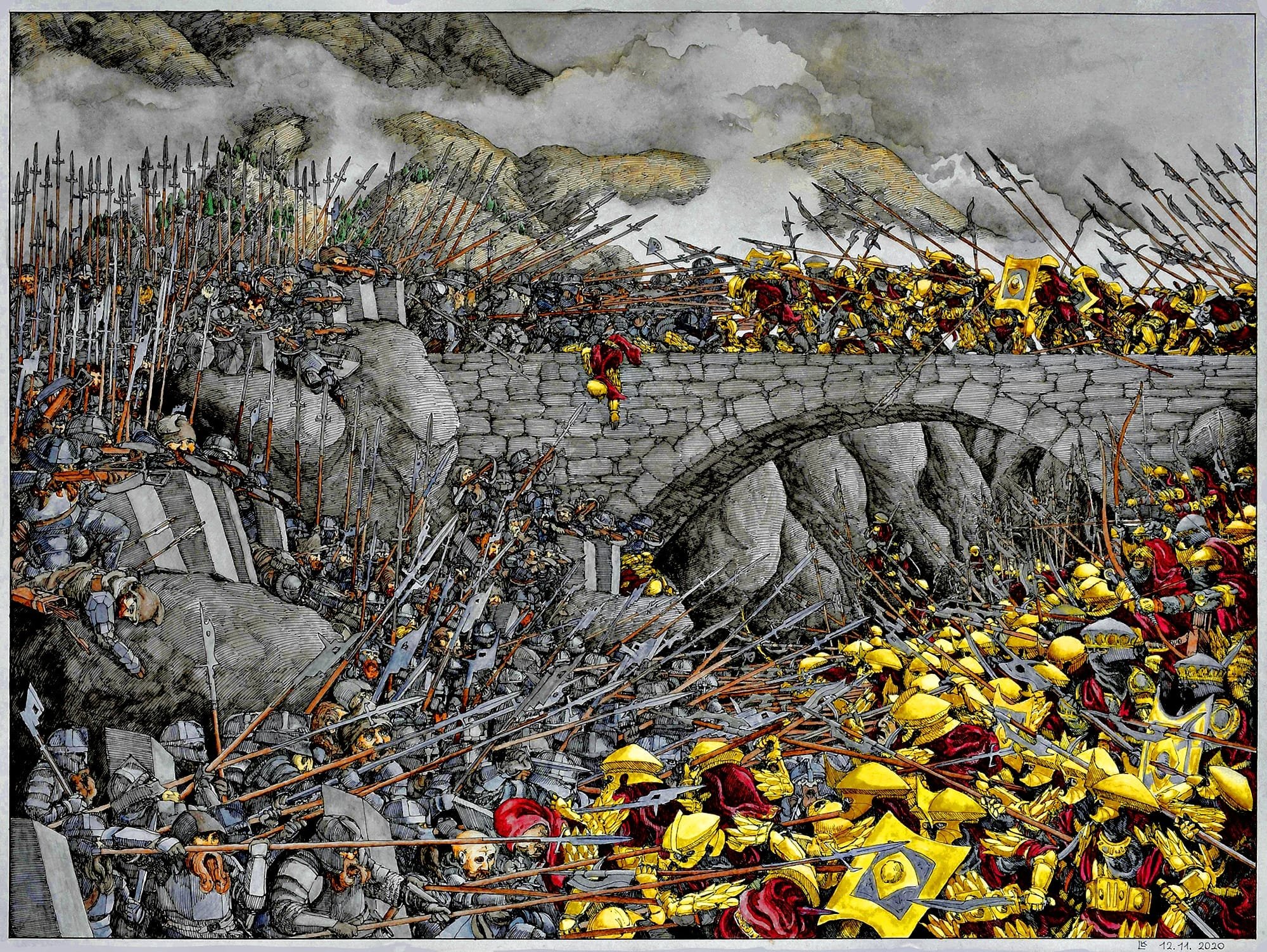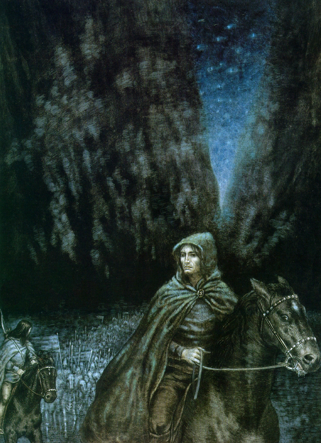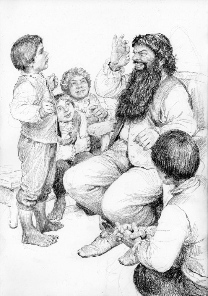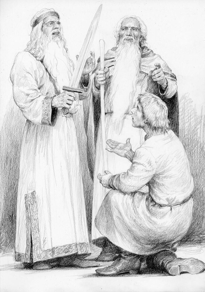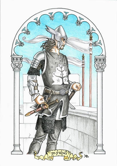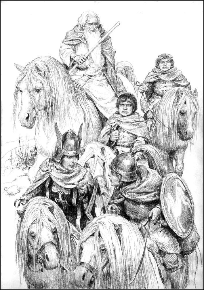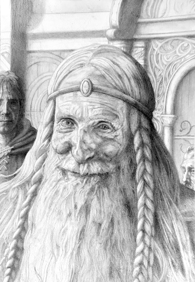 Комментарий художника: Ещё один набросок, который месяцами лежал в стороне. Можно было бы доделать, но я решил отпустить — думаю, я достиг того, чего хотел. Для меня это именно книжный Теоден. Не только могучий воин-король (о котором в какой-то момент сказано, что он подобен самому Ороме), но и «добрый старик» (как Гэндальф говорит Пиппину), чья память потом довела Мерри до слёз. Старик, в котором есть доля смирения, озорная улыбка и блеск в глазах, а ещё — щепоть чёрного юмора, звучащего у него в устах. Мне нравится, как Толкин противопоставляет его более холодному и возвышенному Денетору. Это часть профессорского почтения к «малому и слабому», которое пронизывает всё его творчество — и явно, и тонко.
