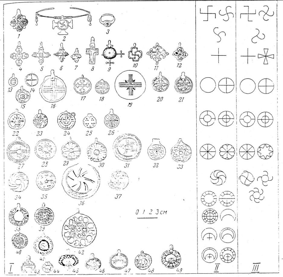 Наиболее важный символ – безусловно Кольцо Всевластья. Кольцо из золота, металла который ассоциируется именно с солнцем. Круг из золота вполне можно назвать символом солнца. Багровое Око – тоже солярный символ. Вот для примера традиционные солярные символы. Те из них, где внутри большого круга нет прямых линий можно сравнить с изображением глаза.