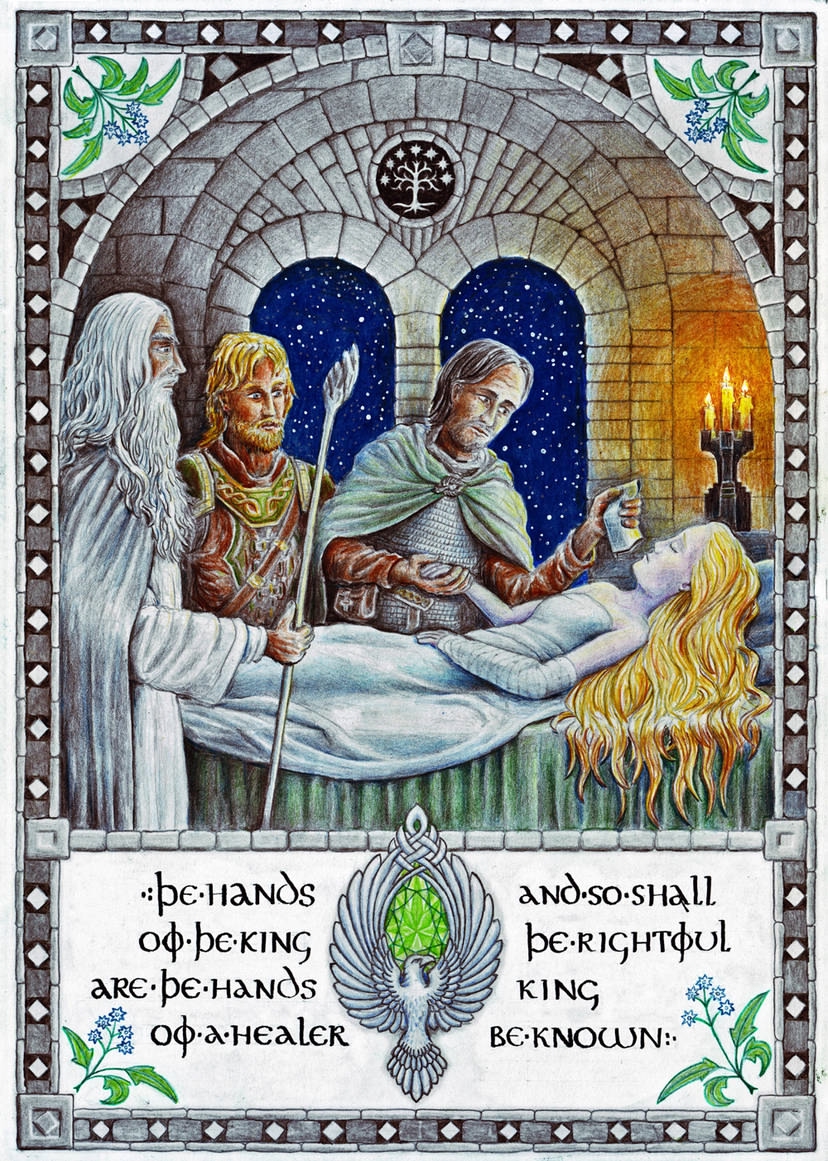 Еще один штрих - на короне Арагорна тоже можно увидеть Солнце вокруг изображения дерева.
