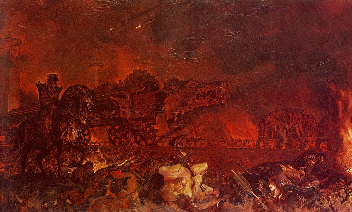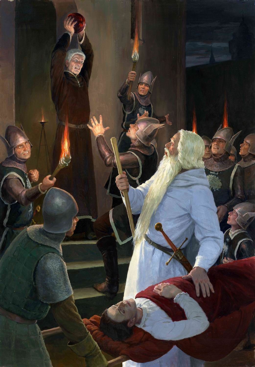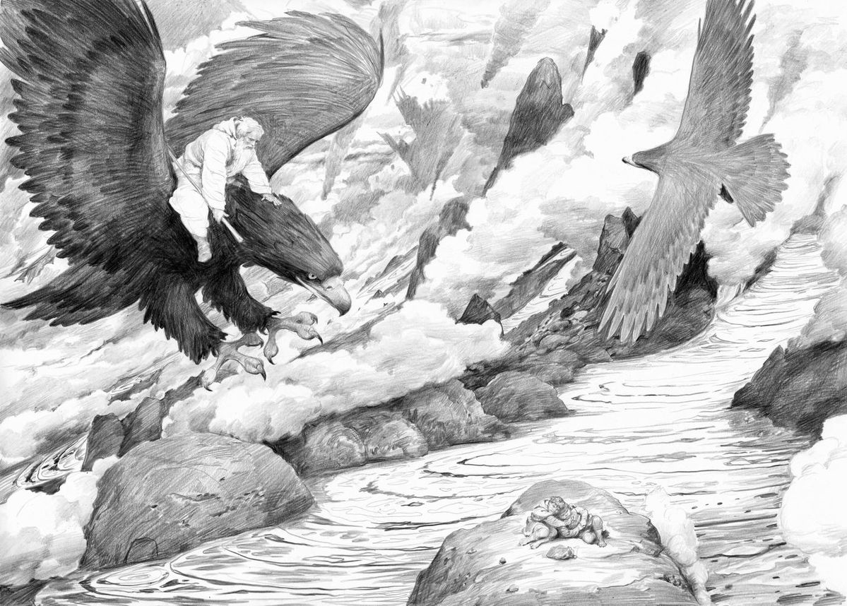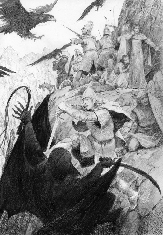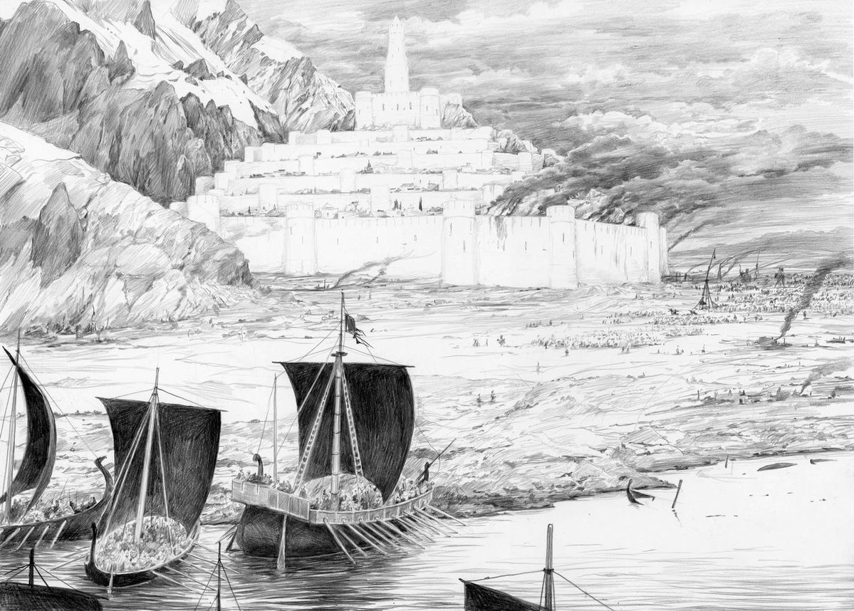 — Мрачные сны я видел, — тяжело произнес он, — но теперь чувствую, что пробудился. Жаль, что ты не пришел раньше. Сейчас ты увидишь только гибель моего дома. Недолго стоять этим древним стенам: скоро огонь пожрет их. Что мне делать, Гэндальф?
