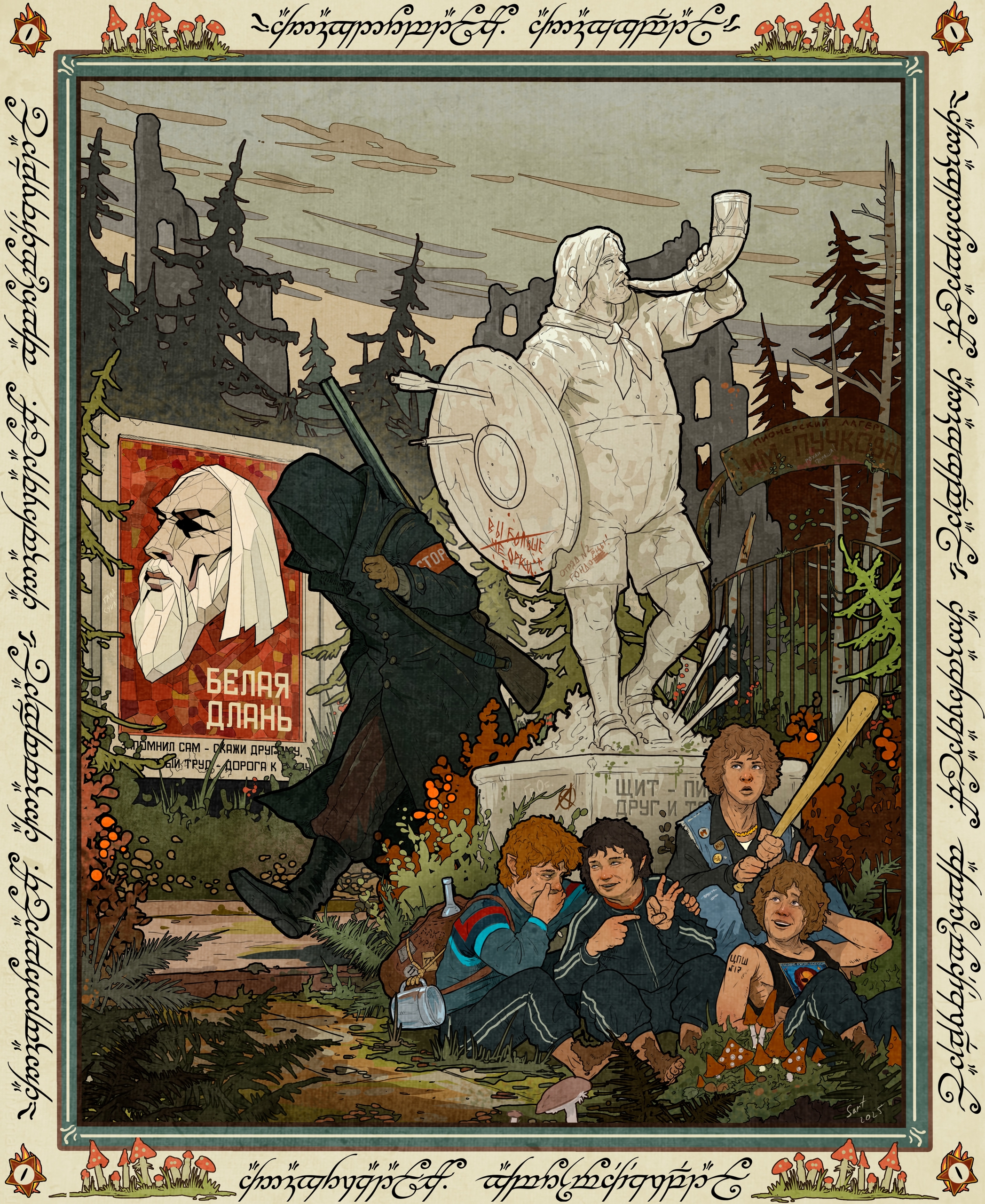 ВНЕЗАПНО на моей памяти почему-то никто не пытался критиковать Толкина за пропаганду нездорового образа жизни. Главным образом - курения. Сам автор был злостным курильщиком, как и множество ветеранов войн, и большинство его героев тоже курильщики. Или я плохо искал? По-моему, с точки зрения "поколения снежинок" и прочего соево-веганского унылого лобби Толкина надо отменить уже только за это!