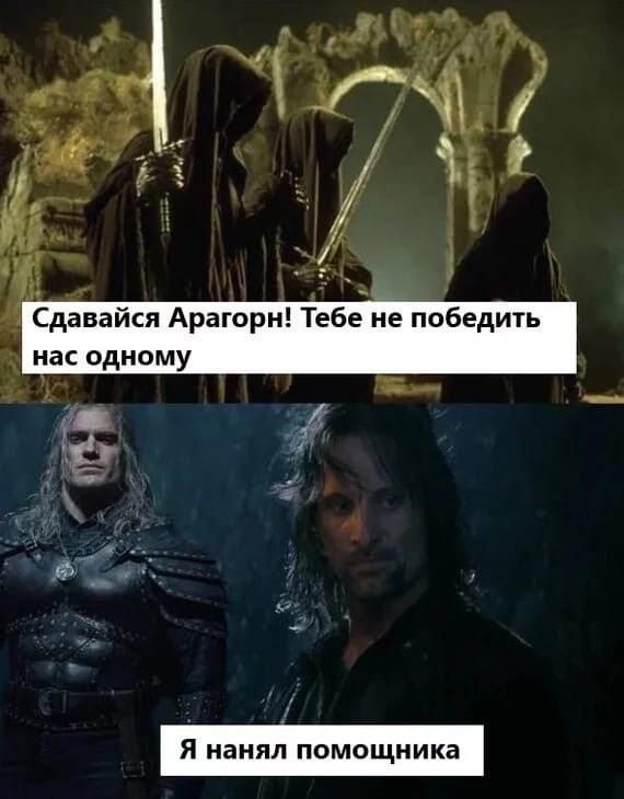 И это было его ошибкой. Сейчас перечитываю ВК на английском - назгулов попускают все, кому не лень. Буквально прямо подчёркивается, что это уже не люди, а недочеловеки, призраки уровня домового или чуть выше. В диалогах все их страсть как боятся - "ууу, назгулы" - а как доходит до дела, так Леголас из лука "Тёмную Тень Зла, Покрывающую Пол-неба" сшибает. И всё, пук-мяк, речку переплыть мы уже не можем. Арагорн горящими ветками в одиночку от нескольких всю ночь оборонялся. Это смешно, субханналя.