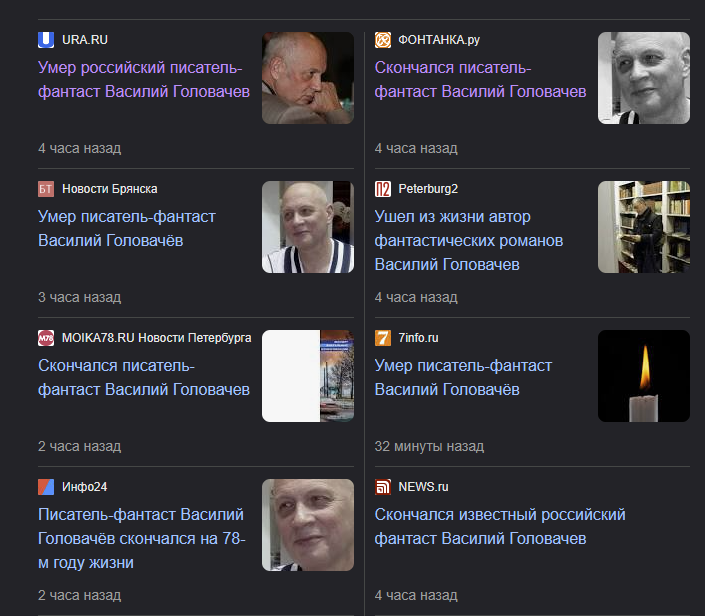 >>613724 Ну, я в школе читал у него "Чёрного человека", "Бич времён", про танцора, УАСС-цикл, вот это всё, мне нравилось. Но вот "Реликт" я тогда целиком не прочитал - в библиотеке полностью не было, а покупать жаба задушила. Пару лет назад скачал и попробовал выполнить этот старый квест — и не шмог. Последние книги такое отборное шизославие, что и Петухов не постеснялся бы. Так что думаю, деду давно пора была исекаиться в ОЯШа, а то старость совсем не радость.