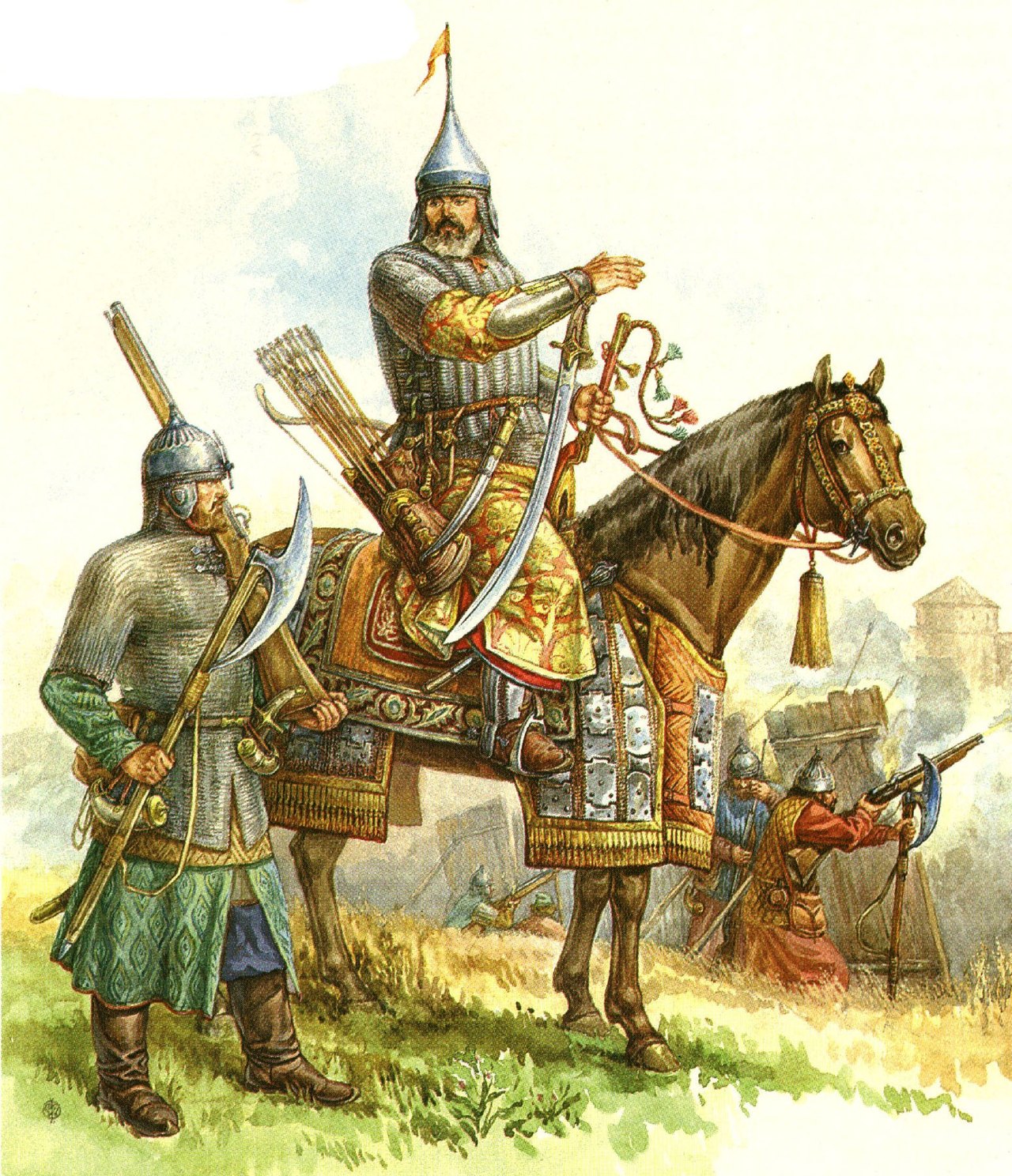 Как видим, несмотря на большую массу конных стрелков, в русской армии 16 века сохраняется ядро тяжелой кавалерия в доспехах и копьями.