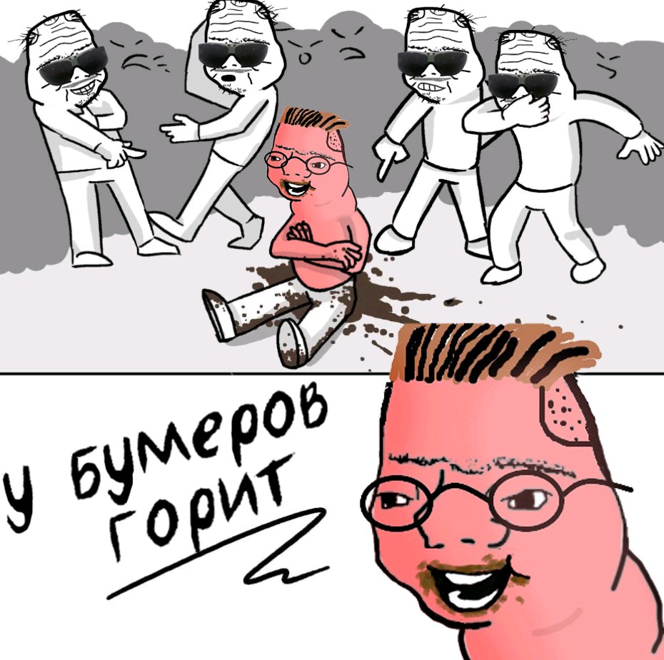 >>630814 >Что такое настоящий тролль? Человек имеющий опыт и успешный в троллинге. >Почему он никогда не назовет себя троллем? Потому что это противоречит целям троллинга. Вызвать у собеседника баттхёрт крайне проблемно если он понимает что его троллят. >Как именование себя троллем определяет возраст человека? Поскольку опытный тролль себя троллем не назовёт, то следовательно перед нами тролль неопытный. Отсюда логичное предположение о возрасте индивида. >Как возраст человека определяет профиль учреждения в котором он учится/работает? У анона нет прямого указания, что одно следует из другого. Но поскольку ты нелогичен то он высказывает предположение что сфера твоей деятельности с точными науками никак не связанна. >К чему эта боевая картинка из начала 20ых? Вероятно по мнению анона она наиболее полно описывает взаимодействие с тобой.