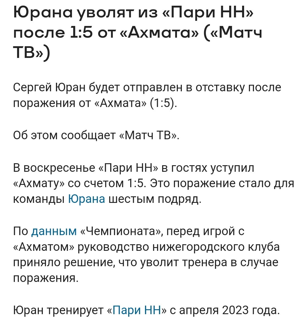 его не уволят, они договорились что при нем сольют, а его типа уволят потом типа это его вина, хотя он там просто для иллюзии честного матча был сегодня