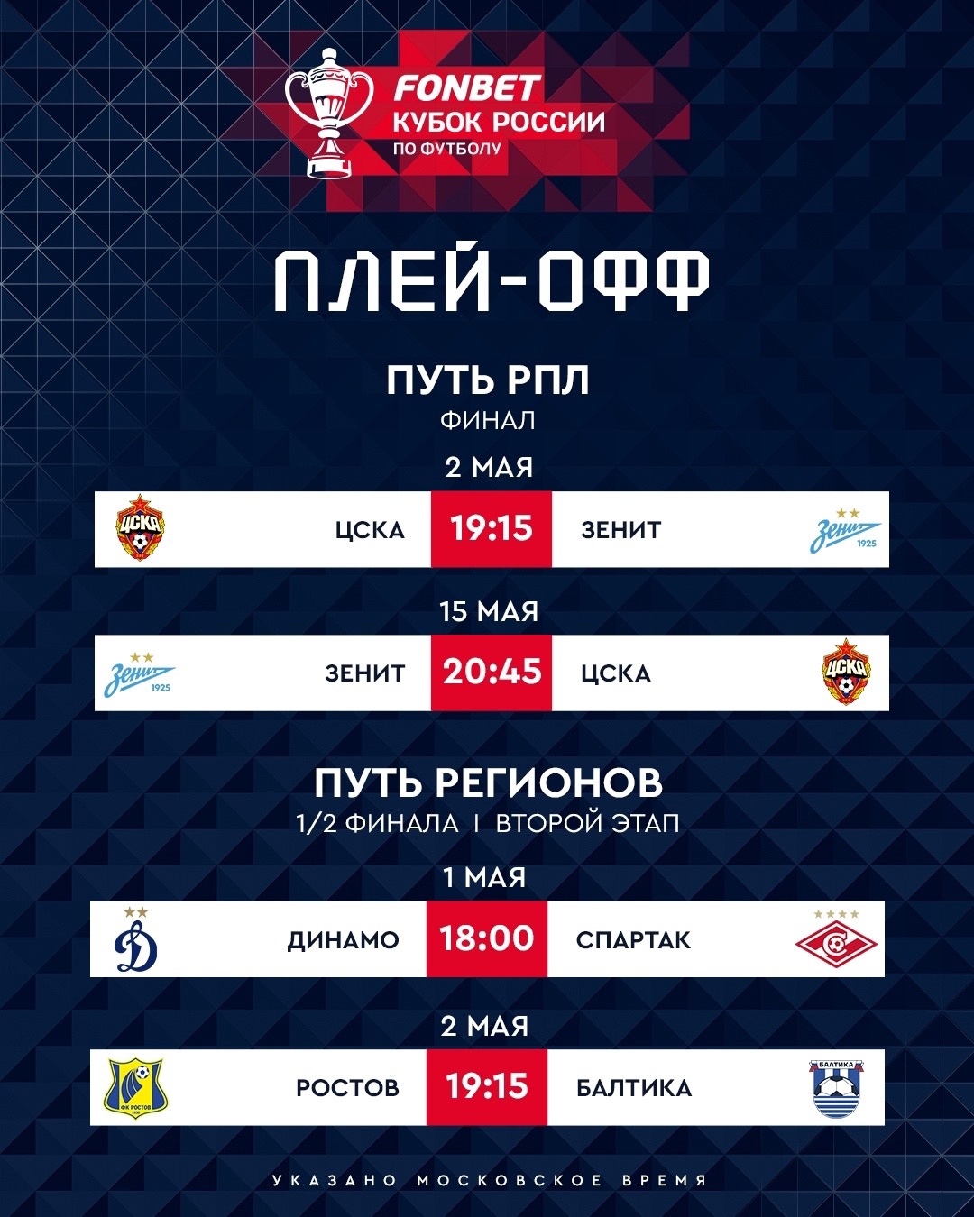 Фанатские объединения московского ЦСКА и санкт-петербургского «Зенита» договорились о соблюдении нейтралитета и исключении взаимных оскорблений в первом матче финала Пути РПЛ Кубка России между командами.