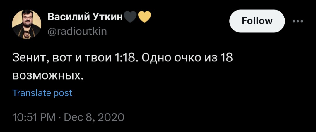 >>3280302 Не бомби, мусорёнок. Да, великий и могучий 20 лет в кризисе усилиями топ манагеров из Лукойла. Но даже так умудряется регулярно ссать на унылое бестрофейное Днонамо.