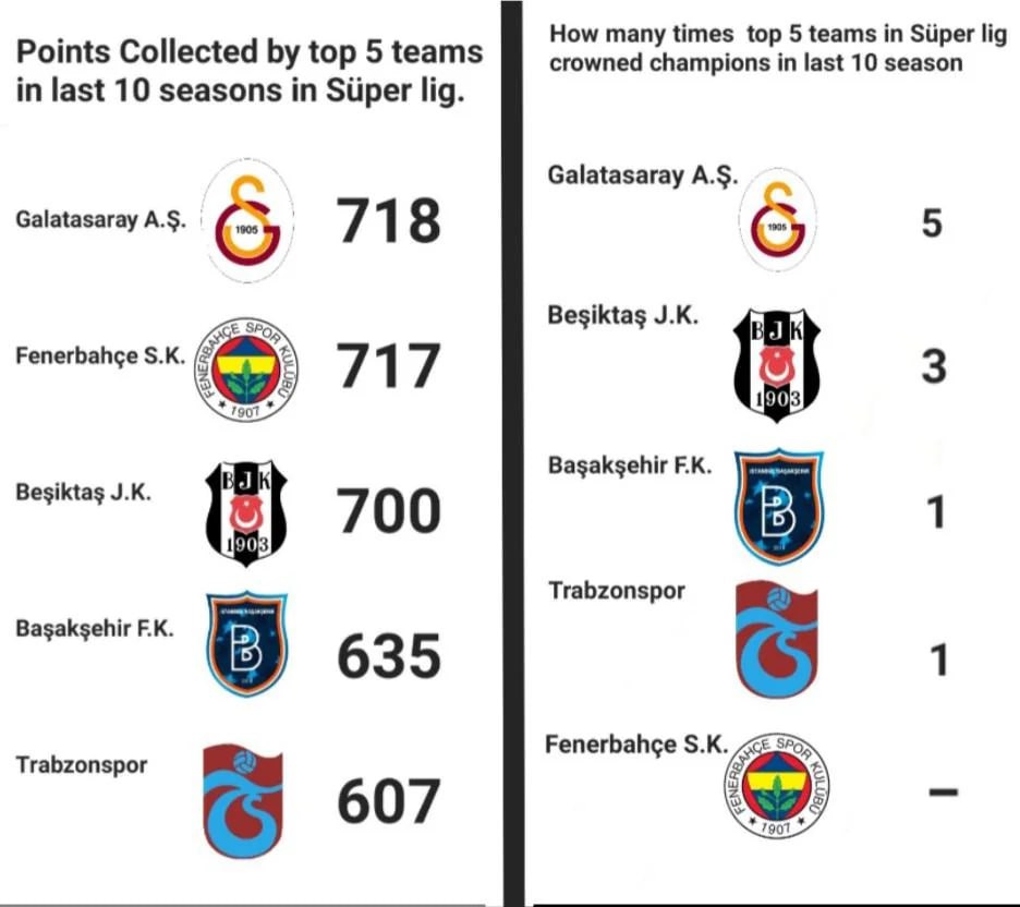 >Клуб не может выиграть чемпионат уже 10 лет. >Суммарно за эти годы «Фенер» набрал лишь на 1 очко меньше, чем «Галатасарай», но не взял при этом ни одного титула. 6 раз(!) заканчивали на втором месте. За исключением 2 провальных сезонов 18/19 и 19/20 из топ-3 клуб не выпадал.