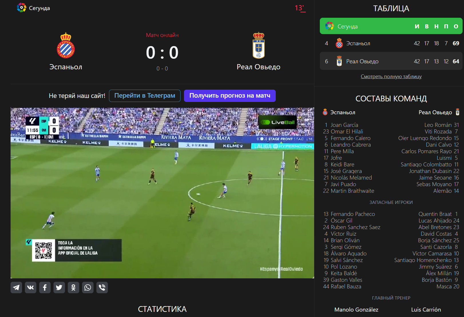 >>3294567 Подумал, что раз матчи такие поздние (середина июня имеется в виду), то это финал, но нет. Сегодня был матч Овьедо-Эспаньол и вот это уже финал. Овьедо прямо мощненько укатывает, но счёт всего 1:0, так что может Эспаньол ещё отыграется.