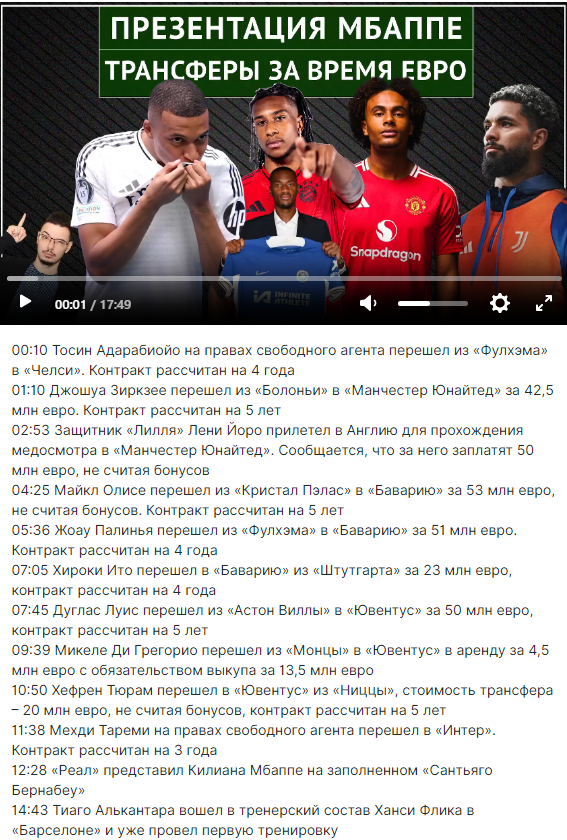 Евро закончился. Можно возвращаться к клубному футболу. Намедни купили какую-то очередную ноунейм хрустальную обезьяну, а ещё ранее выкупили трусонюха у швабов. Трансферы на вход пиздец.