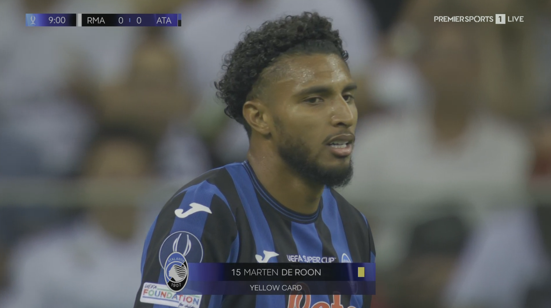Прям хорошо видно, что Реал расслаблен, не торопится и всё такое [вы сами знаете эту тему], но даже такого Реала хватает, чтобы Аталанта нервничала. Результат: не только мелкие ошибки, но и ранняя жёлтая. Всё очень трудно.