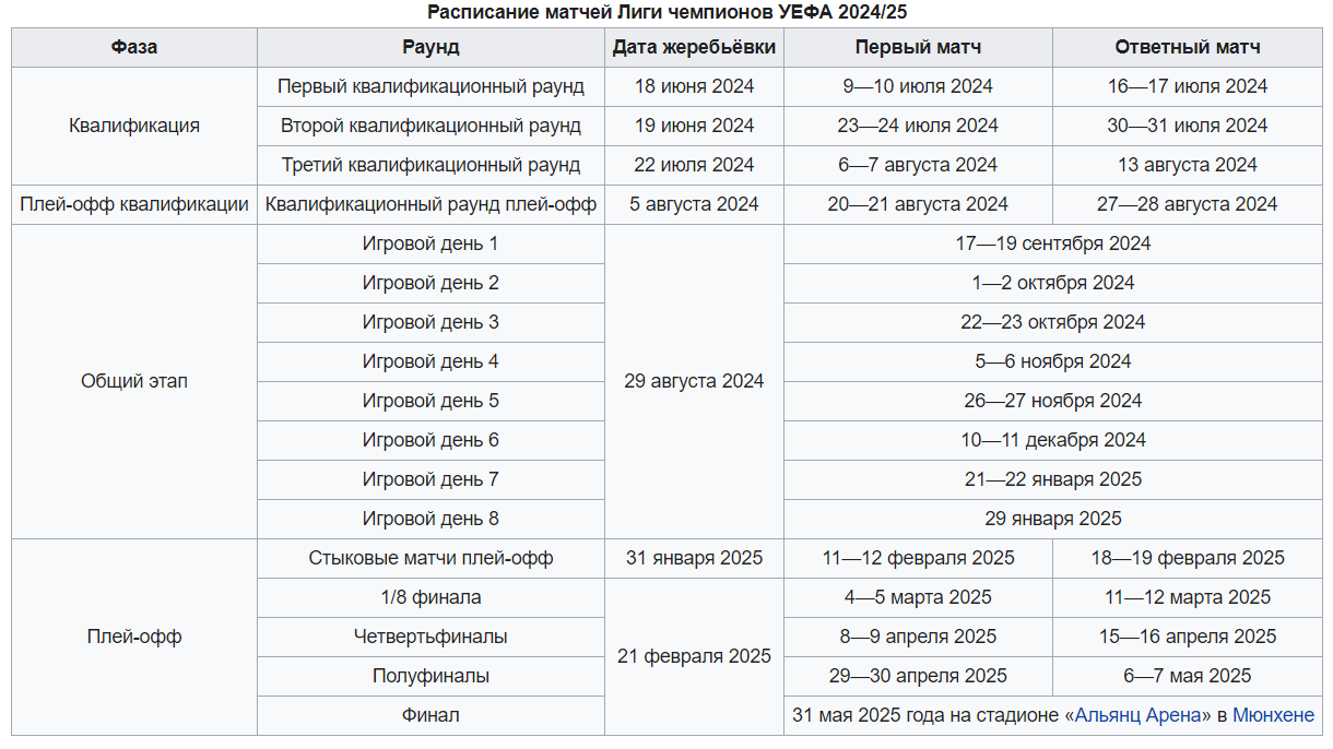 Итак, начинается общий этап ЛЧ. Каждая команда внутри каждой из 4-х корзин сыграет 8 матчей. Внимание, 8, а не 16, то есть по 1 разу друг с другом. 4 матча дома и 4 в гостях. То есть уже с общего этапа ЛЧ начинаются крупные поединки. У нас, так скажем, в первый же день ЛЧ сразу играют Реал-МС и Бавария-ПСЖ.