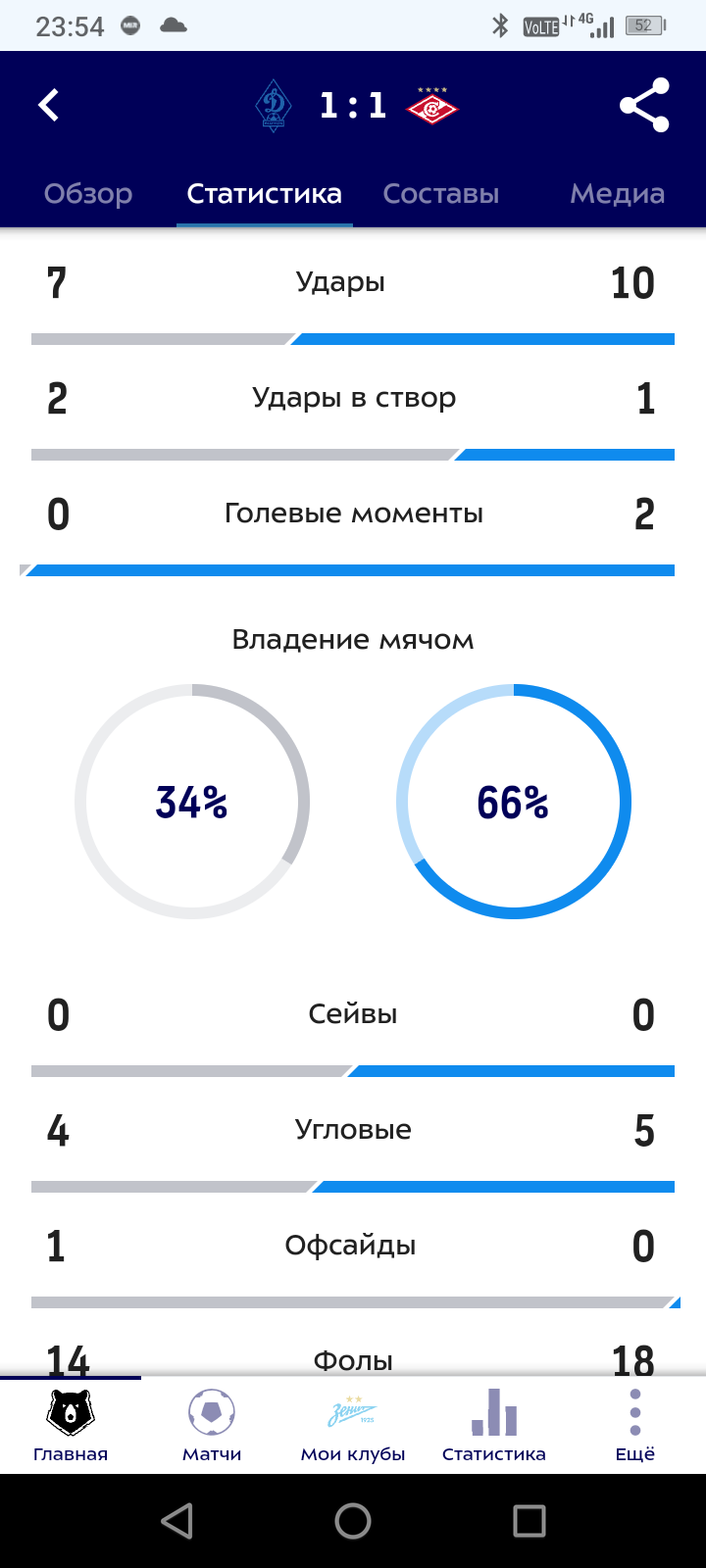 Обратите внимание на количество нарушений - у ЦСКА их в два раза больше. Это хороший показатель главного: великий Зенит играет в стиле Реал Мадрид - в уникальном и крайне сложном, требующим особых ментальных настроек. Они не суетятся, дают оппоненту показать все свои сильные стороны, устать и разочароваться в неспособности забить гол великому газовому гиганту. Ещё раз: Зенит не даёт забить без большого числа нарушений - ЦСКА фолит чаще, потому что нервничает и пытается быстрей-быстрей закатить. Итог немного предсказуем, как и в случае с Реалом.