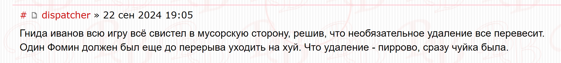 блять сука он на серьезных щщах оставил всех троих этих головастиков горловастиков нахуй при этом сделав ебучую тройную замену что блять у человека в голове творится нахуя нам эти долбоебы на поле