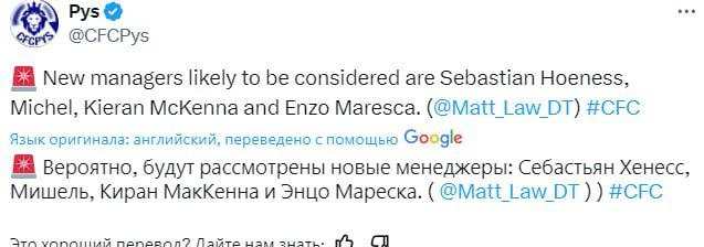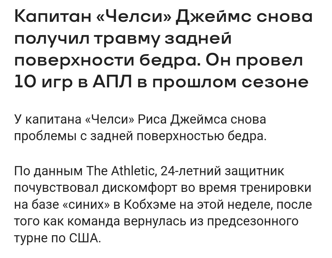 Стоит в очередной раз повторить, что проблема этого Челси не в тренере. Проблема этого Челси в сыром составе без готовых игроков для топового клуба (за исключением Палмера, да и он сыроват; и возможно Энцо), а также в травмах. Напомню, что Челси весь сезон, считайте, играл без своих главных фуллбэков - Чилуэлла и Джеймса. Челси нужен хороший центрбэк, возвращение на пиковую форму Чилуэлла, один хороший фуллбэк, один хороший вингер и нападающий. Если купят напа, который сможет забить за сезон 20 голов, если купят вингера, способный набрать 20-25 очков по системе гол+пас, если найдется фуллбэк, который будет выжигать свой фланг в лучшие сезоны Джеймса, и центрбэк, который будет страховать говно типа Дисаси/Бадиашиля, то Челси не только вернется в топ-4, н ои сможет побороться за топ-1. Отдельно стоит отметить травмы: два главных фуллбэка на травме, Чуквуэмека, который набрал форму и начал забивать чуть ли не каждом матче и тащить травмировался, Лавия, который мог навязать конкуренцию жалкой пародии на Канте травмировался. Ну и Нкунку, который должен был делать те самые 20-25 очков по системе гол+пас травмировался раза 3 за этот сезон.