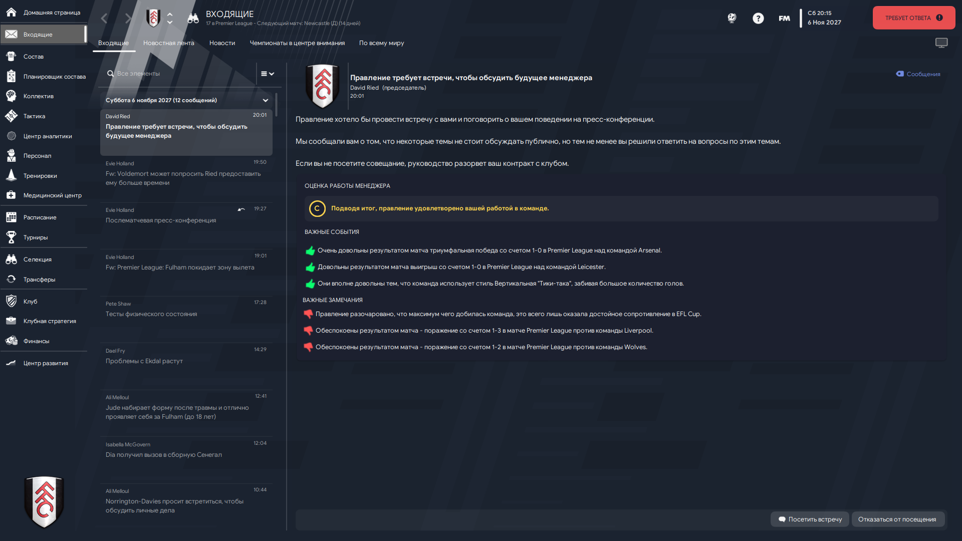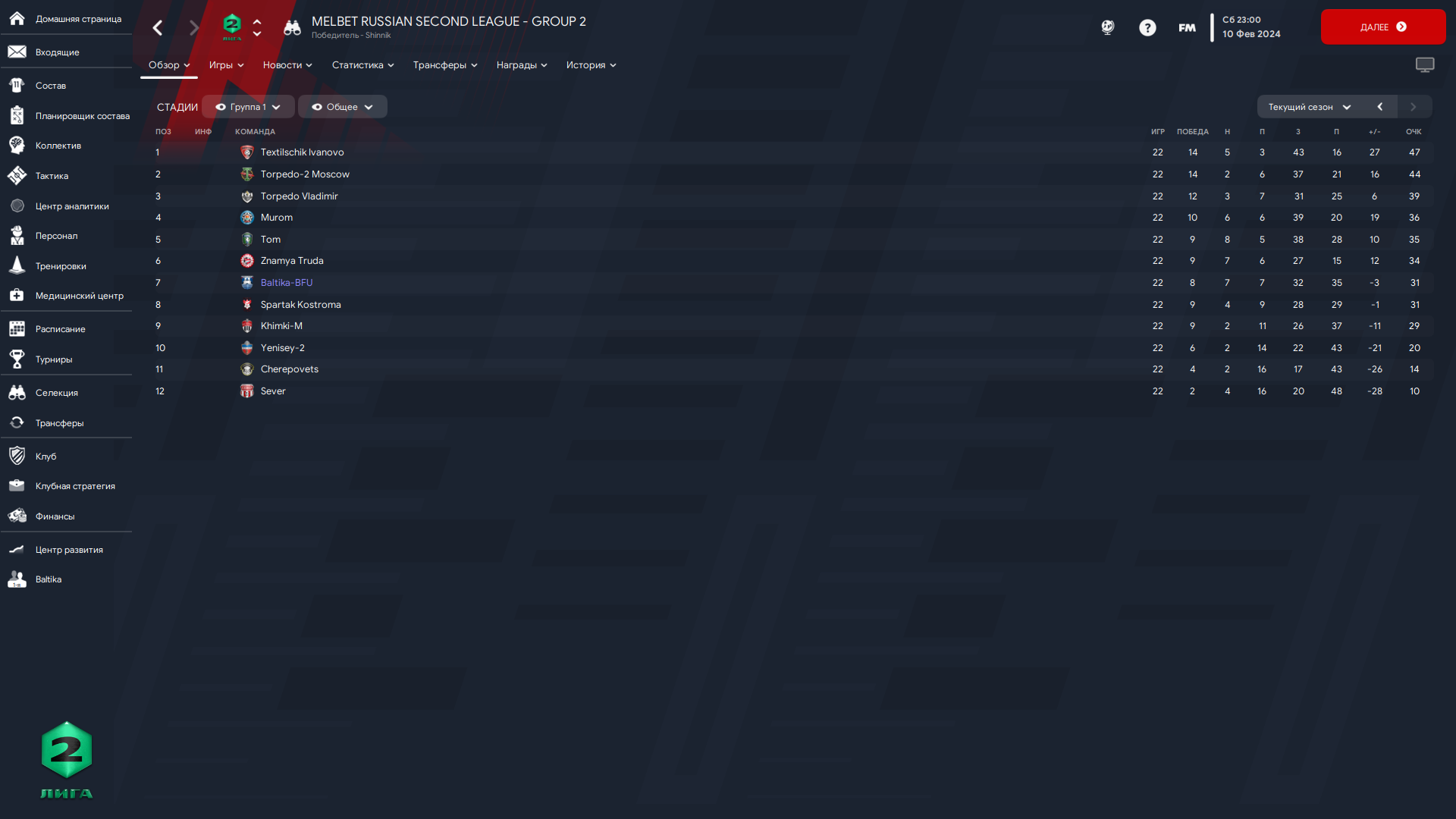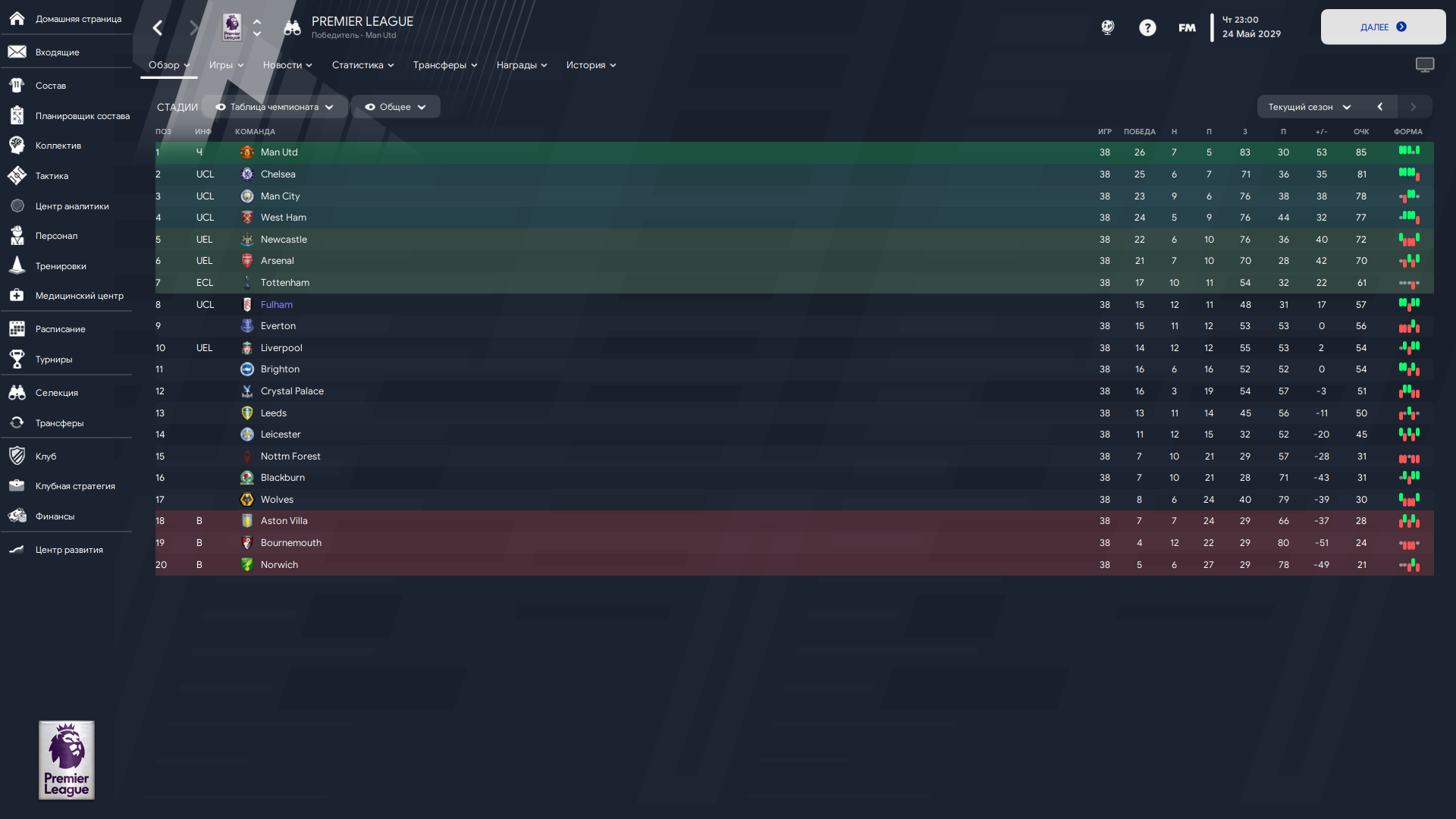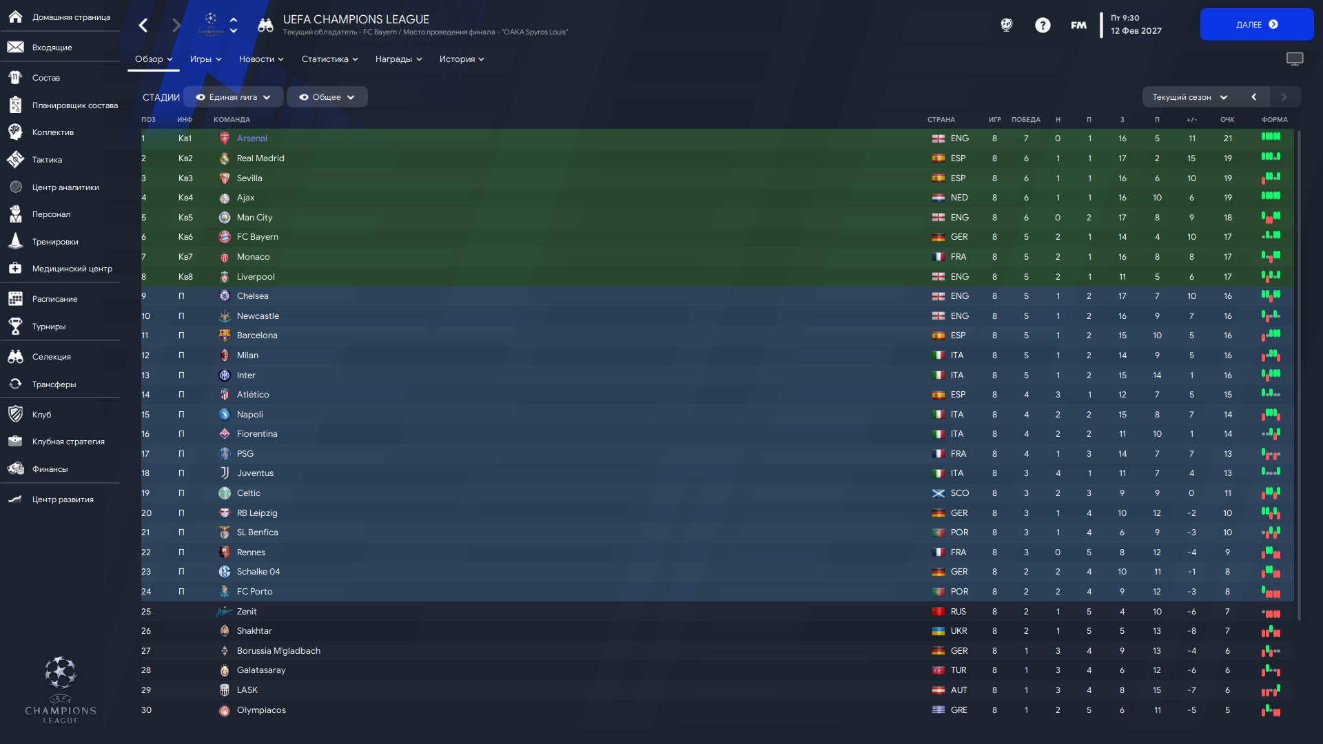 ползём на 4-ом месте, имея 3 игры в запасе. сезон в некотором смысле перестроечный, в центре полузащиты много анскильных новичков, которым потребуется целый сезон чтобы нафармить показатели. так же в арендах набирается опыта неплохое подспорье. из Челси выпизднули Фонсеку и я на дурака кинул заявку туда и в Бильбао. никогда не тренил топ-клуб и топ-5 лиг. а Челси так вообще работа мечта. если примут - откатаю там 20-25 сезонов и закончу сейв нах. если выпизднут раньше, то буду думать. как не смешно, а Тэдди Боулинг обещает 32 миллиона на усиление в зимнее окно. совсем ёбнулся