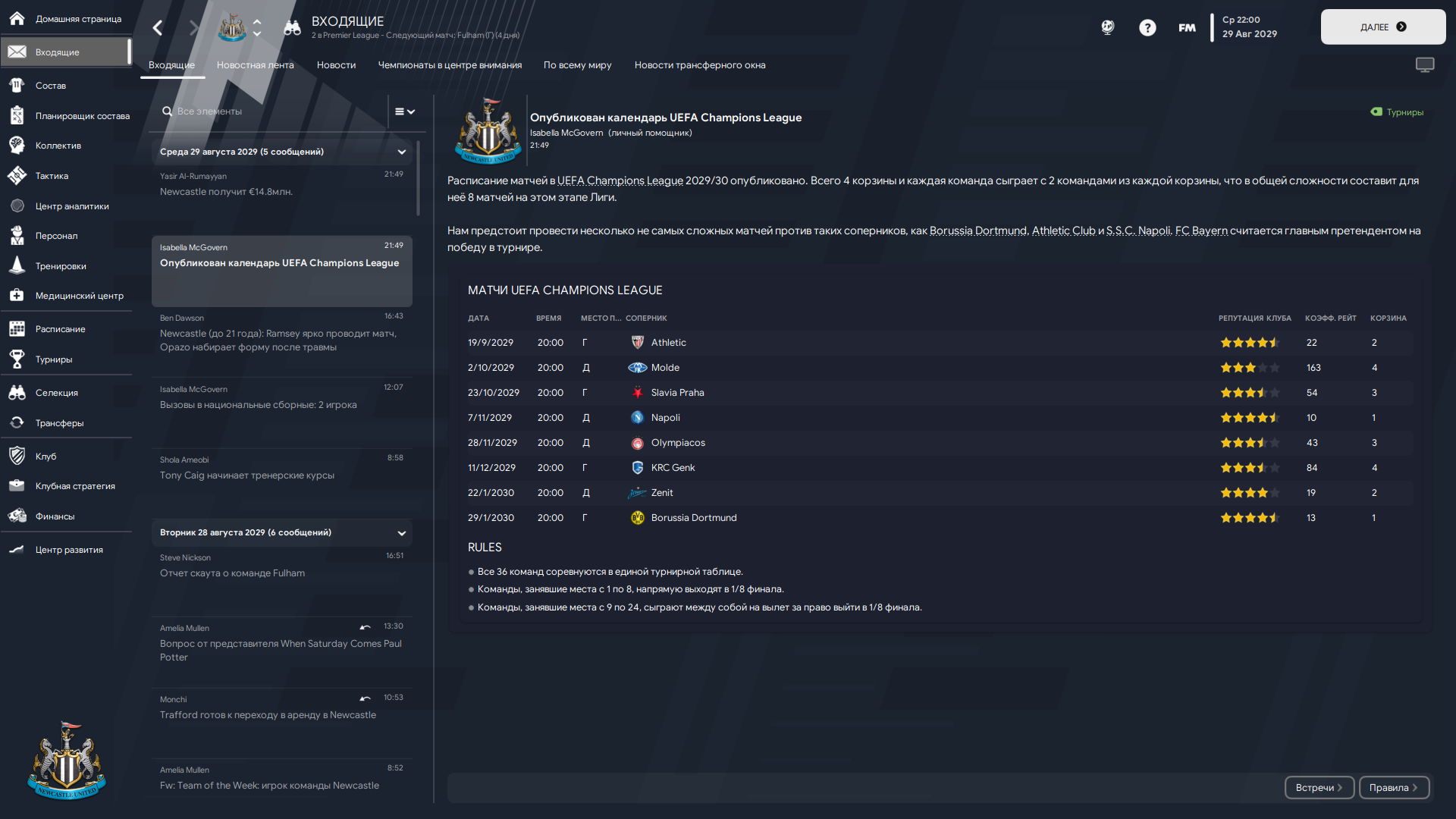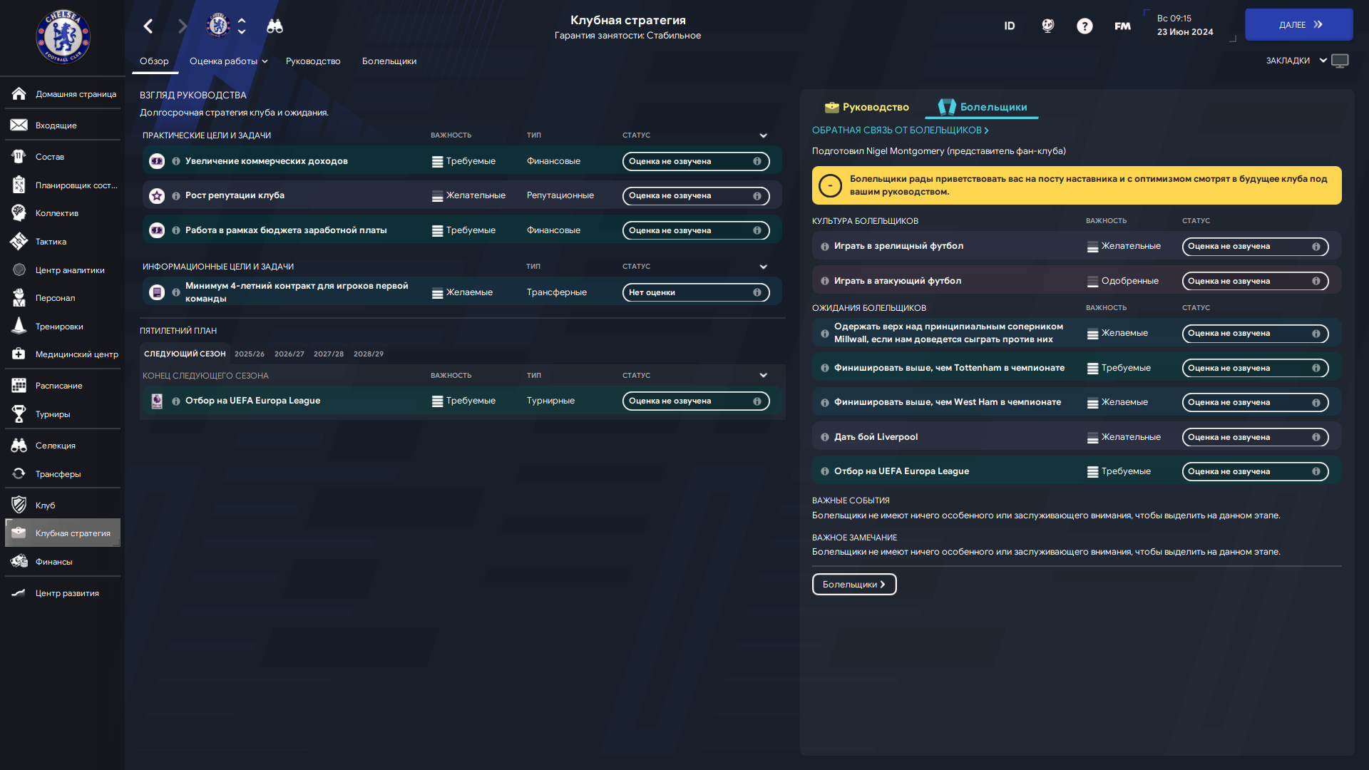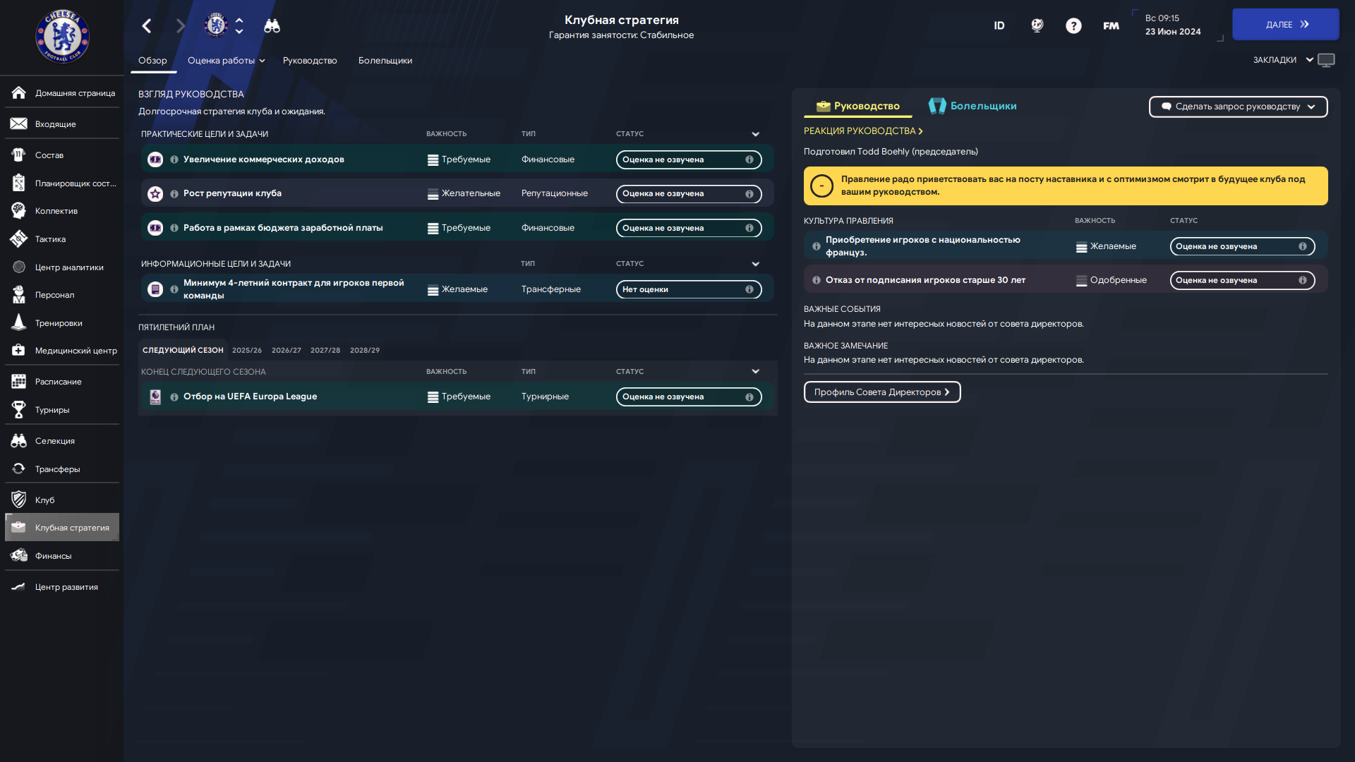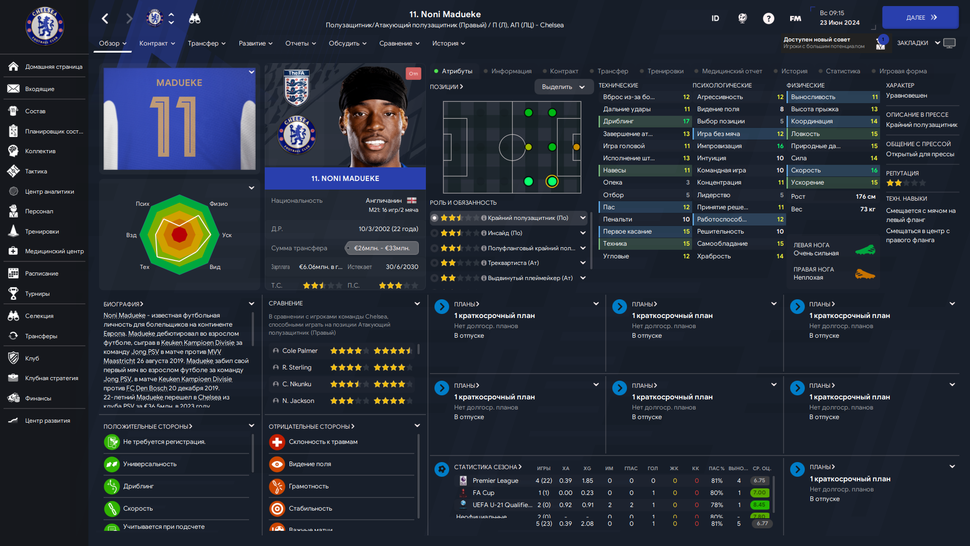 ползём на 4-ом месте, имея 3 игры в запасе. сезон в некотором смысле перестроечный, в центре полузащиты много анскильных новичков, которым потребуется целый сезон чтобы нафармить показатели. так же в арендах набирается опыта неплохое подспорье. из Челси выпизднули Фонсеку и я на дурака кинул заявку туда и в Бильбао. никогда не тренил топ-клуб и топ-5 лиг. а Челси так вообще работа мечта. если примут - откатаю там 20-25 сезонов и закончу сейв нах. если выпизднут раньше, то буду думать. как не смешно, а Тэдди Боулинг обещает 32 миллиона на усиление в зимнее окно. совсем ёбнулся