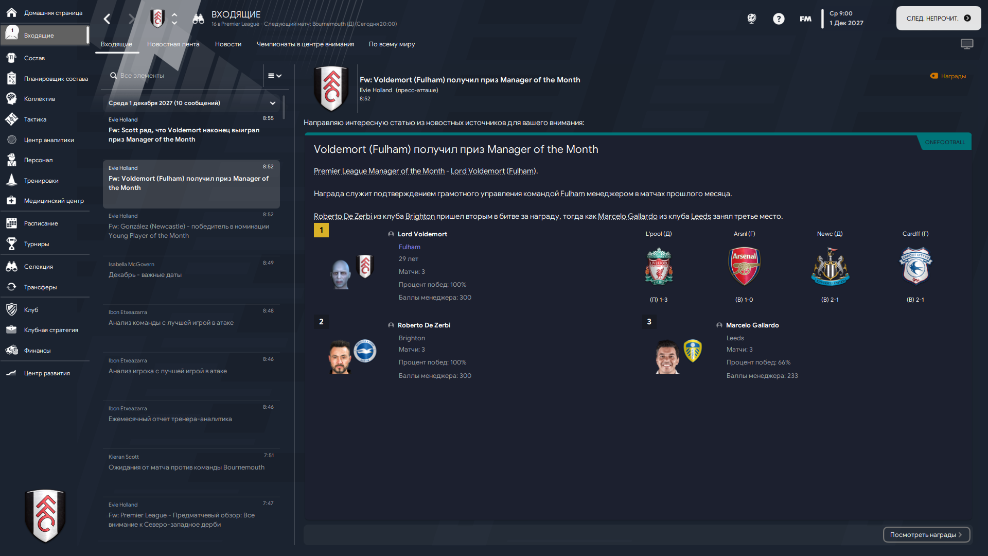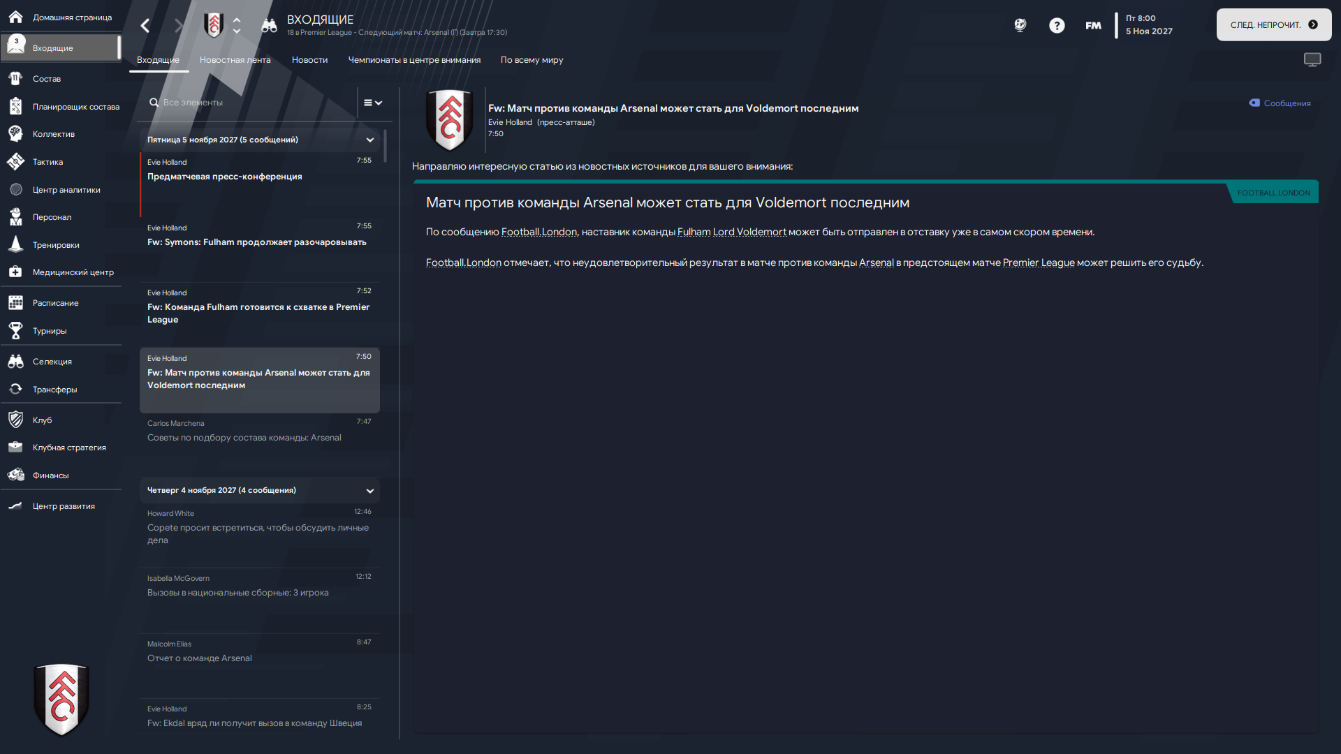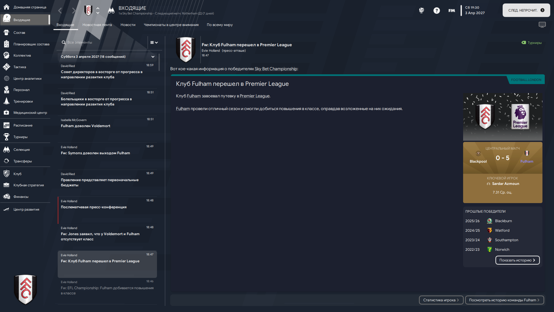 И вот теперь, вернувшись в родной Лондон, мы будем делать из Фулхэма настоящего мирового гегемона, брать титулы, развивать нашу армию пожирателей скрипта и планомерно идти к абсолютному величию - к первому месту в мировом рейтинге тренеров.