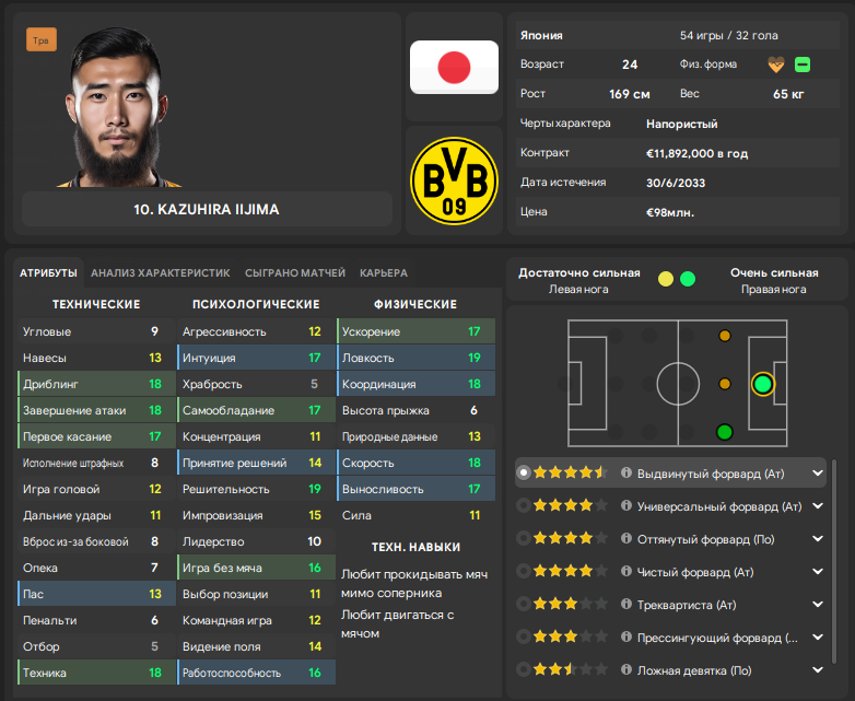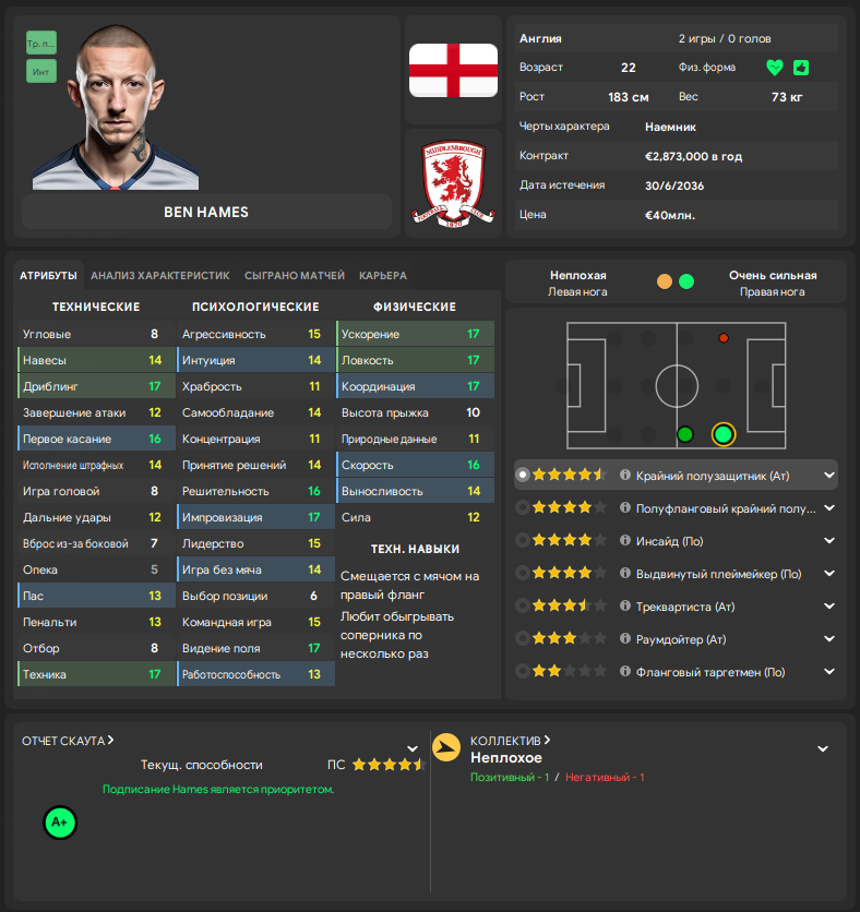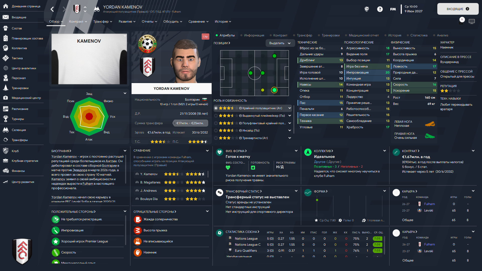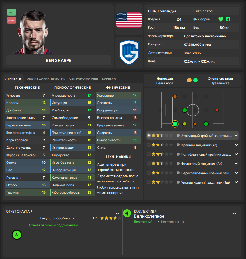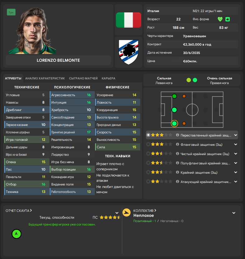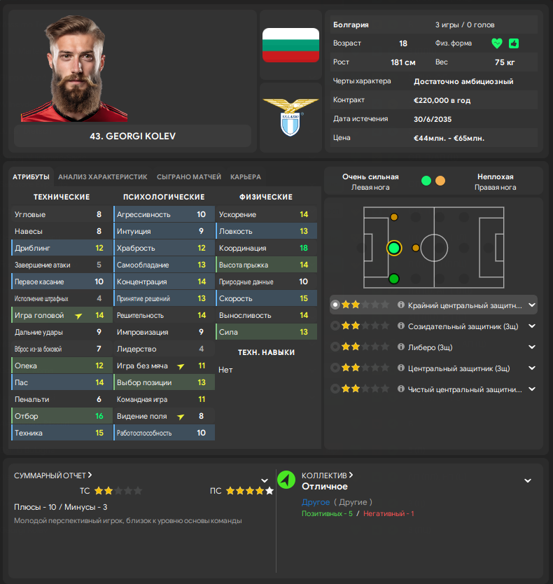 Рома не против залутать 20 мультов за своего воспитанника пик 1. пока что ломается, строит из себя идейного. к нам как к принципиальным соперникам не идёт. пытаюсь провернуть схематоз через аренду с обязательным выкупом. по сути, я дропаю клуб в конце сезона, но хочется оставить после себя крепкую базу для ёбки всего и вся еще на несколько лет. в Бергамо уродился ебаный ДЪ ЖАН-КЛОД ВАН-ДАММ блять пик 2. гляньте на его скиллы. будут деньги - оторву с руками. в последний день летнего ТО за 1.9 млн., на перспективу выписал к себе надежду болгарского футбола пик 3. вроде ничего сверхъестественного, но ценник уже сейчас очень вкусный. не понравится - замотаем какому-нибудь арабскому мешку. а прямо сейчас с обратной арендой до конца сезона торгуем датского биста по имени Пидор. потенциал имеется, а как обрастет мясом пойдёт с молотка как хороший актив ))