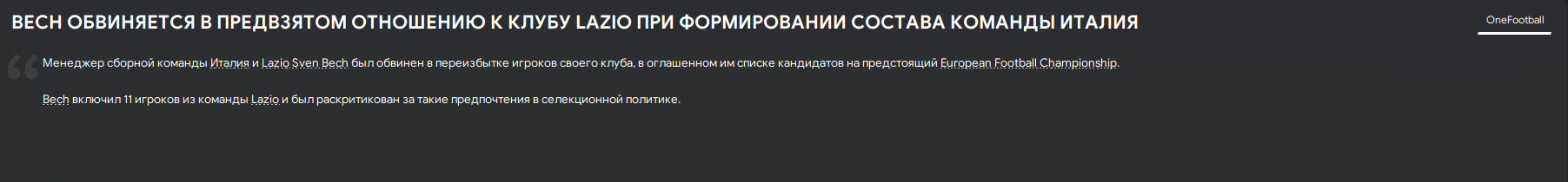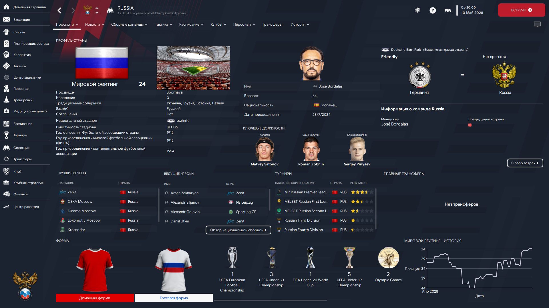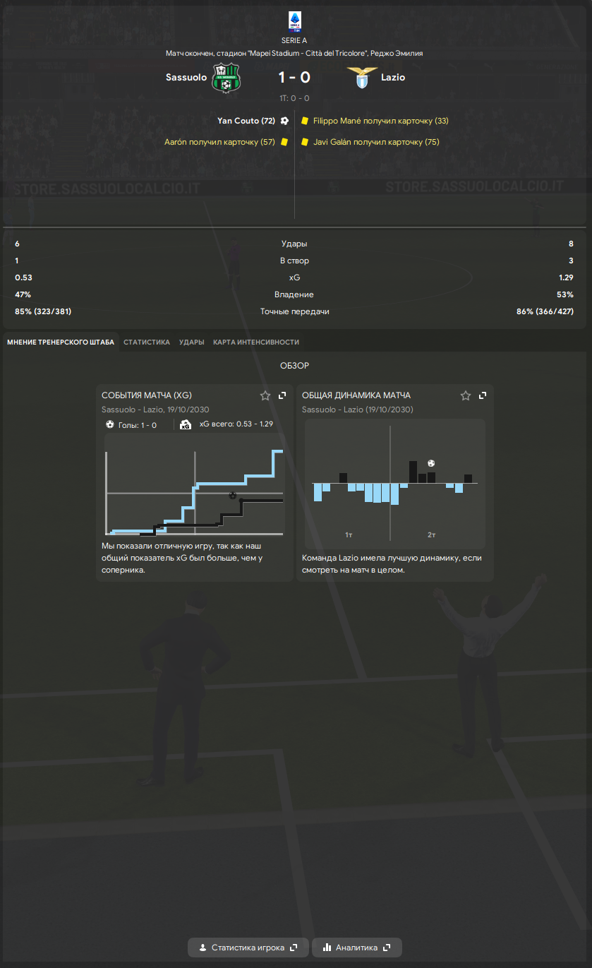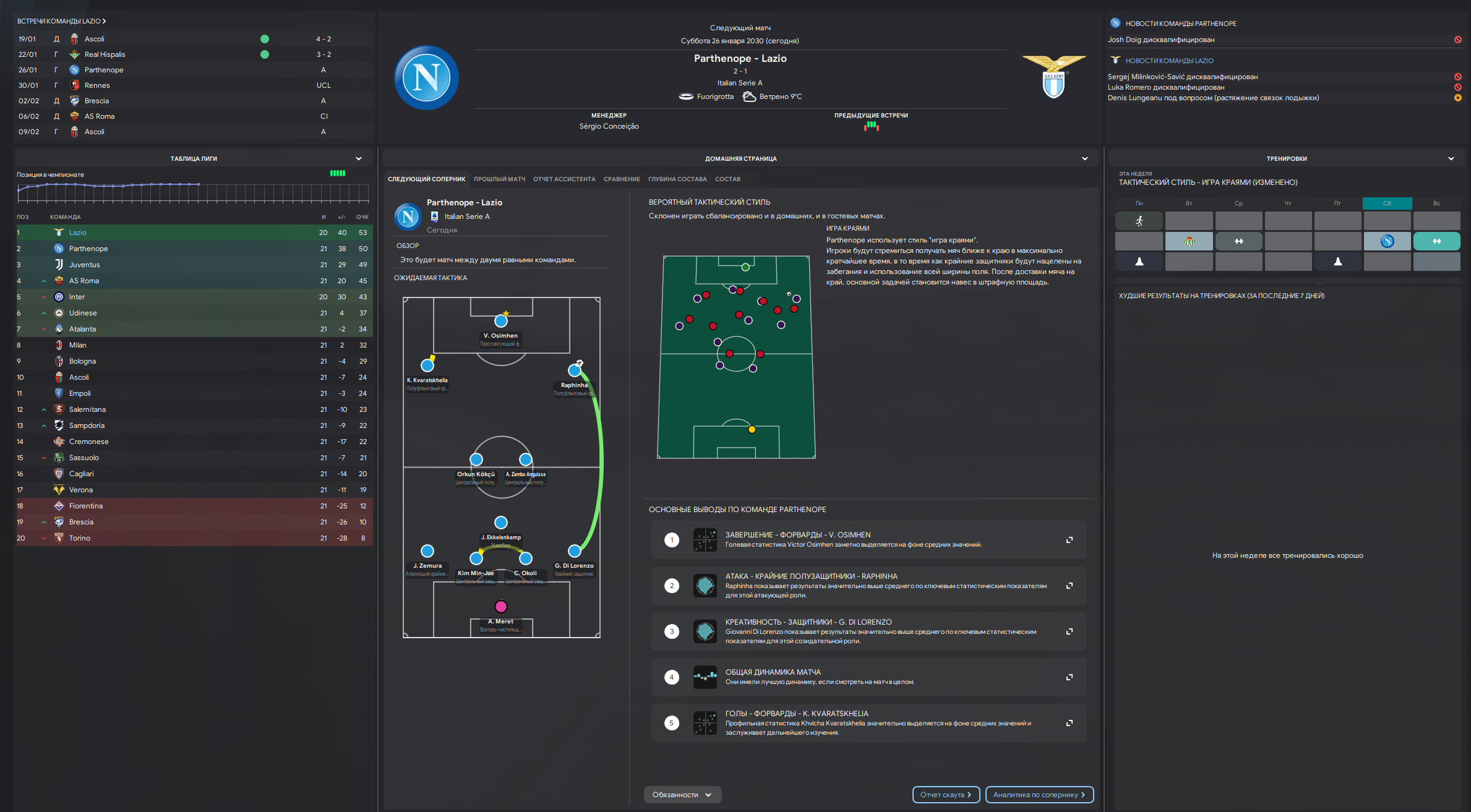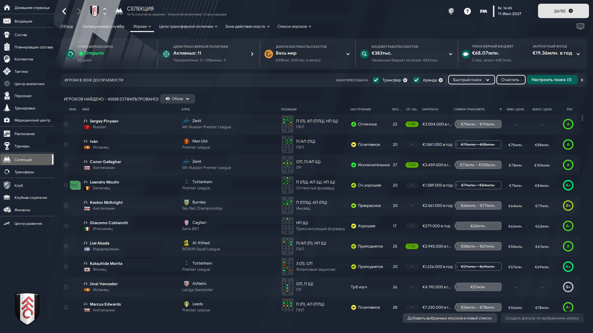 продолжаю верховодить в Лацио без контракта на руках ))))) как такое возможно - хз. по одному богу известным причинам я не прошел собеседование в Лудогорец))))) хотя и соглашался на зарплату в районе 300к в ГОД блять)))))) может оно и к лучшему. прокликал их состав и у меня душа к горлу подошла. 90% хламарей старше 30 + расовое разнообразие таково что кажется будто при комплектации состава предыдудщий физрук консультировался с sweet baby inc. тут тебе и турки, и австралийцы, и лебедь, и рак и щука. попутно сразу три опорника смазывают лыжи. один едва отбегав два сезона возвращается в реал в котором полировал банку -надцать лет. второй для нас вообще "сердце и диспетчер", но по характеру к сожалению наёмник и проститутка. а третий просто старый конь с истёкшим контрактом и при подписании нового требующий место в старте. по факту есть один опорник 30+, способный тянуть уровень основы еще 2-3 сезона. в идеале хочется иметь четверых. на усиление есть 65 миллионов. в закромах молодежки нашелся Буратино которым хотя бы временно можно заткнуть дырку пик 1 и на рассмотрении два варианта с рынка пики 2 и 3. предпочтительнее кончено аргентинец. параллельно жду приглашения куда-нибудь, хотя на рынке вакансии ничего привлекательного нет совсем