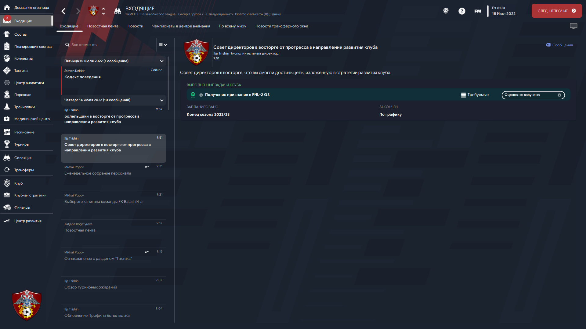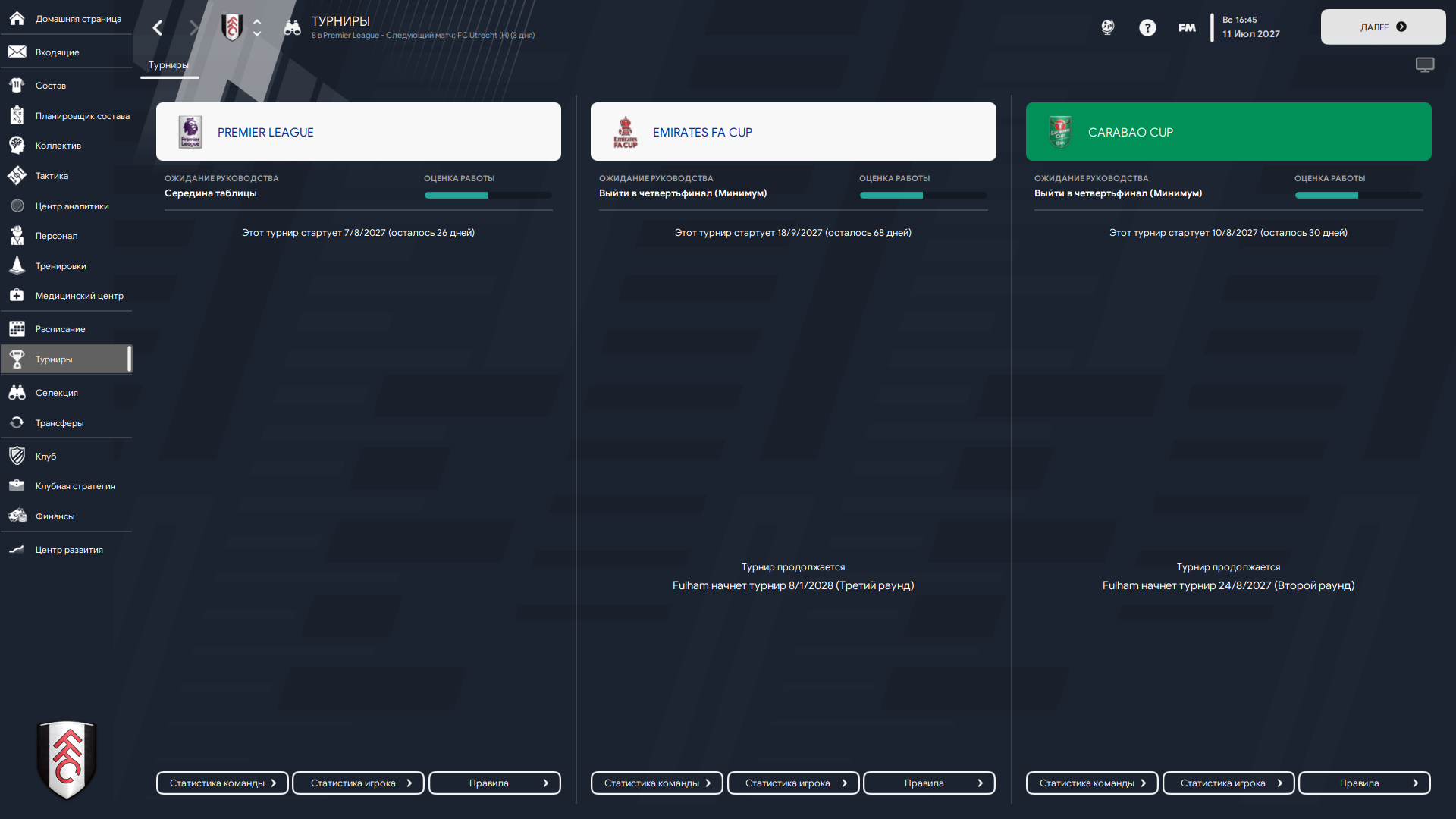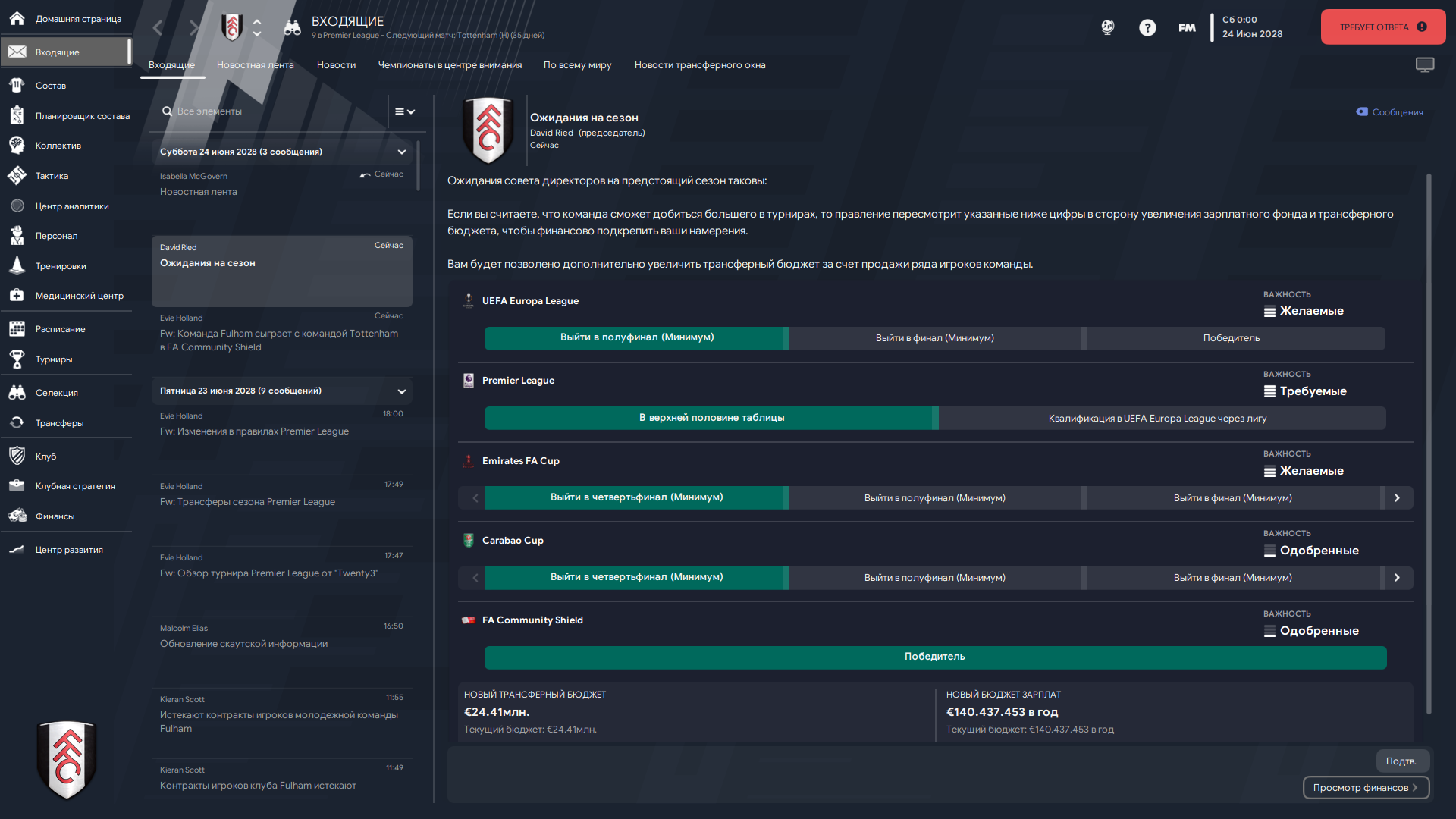 А амбиции-то у нас ебанутые. Как будто уже миллиард в клуб закачали - я должен В ПЕРВОМ ЖЕ СЕЗОНЕ дойти до четвертьфиналов обоих кубков и закончить в середине таблицы нахуй.