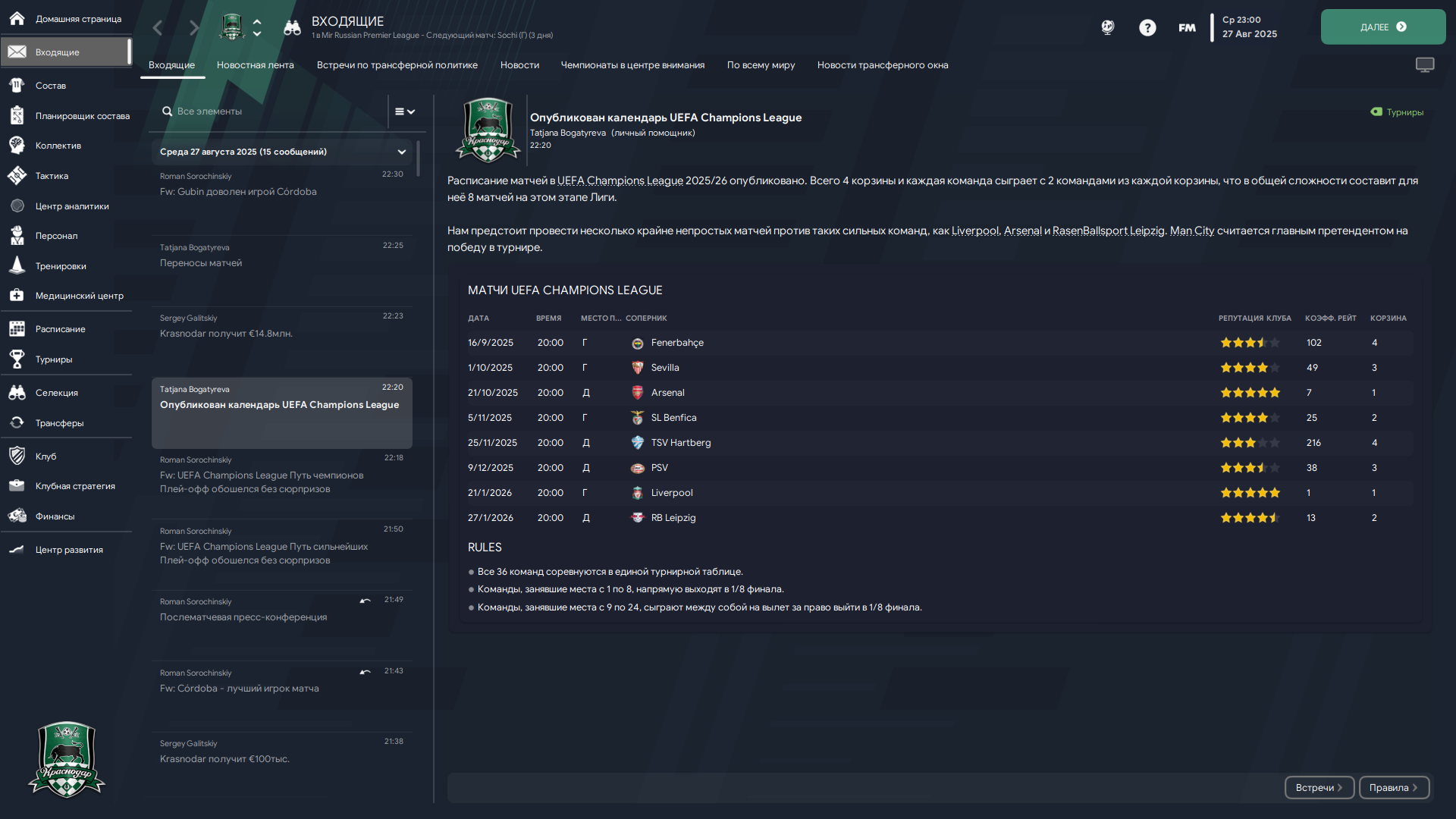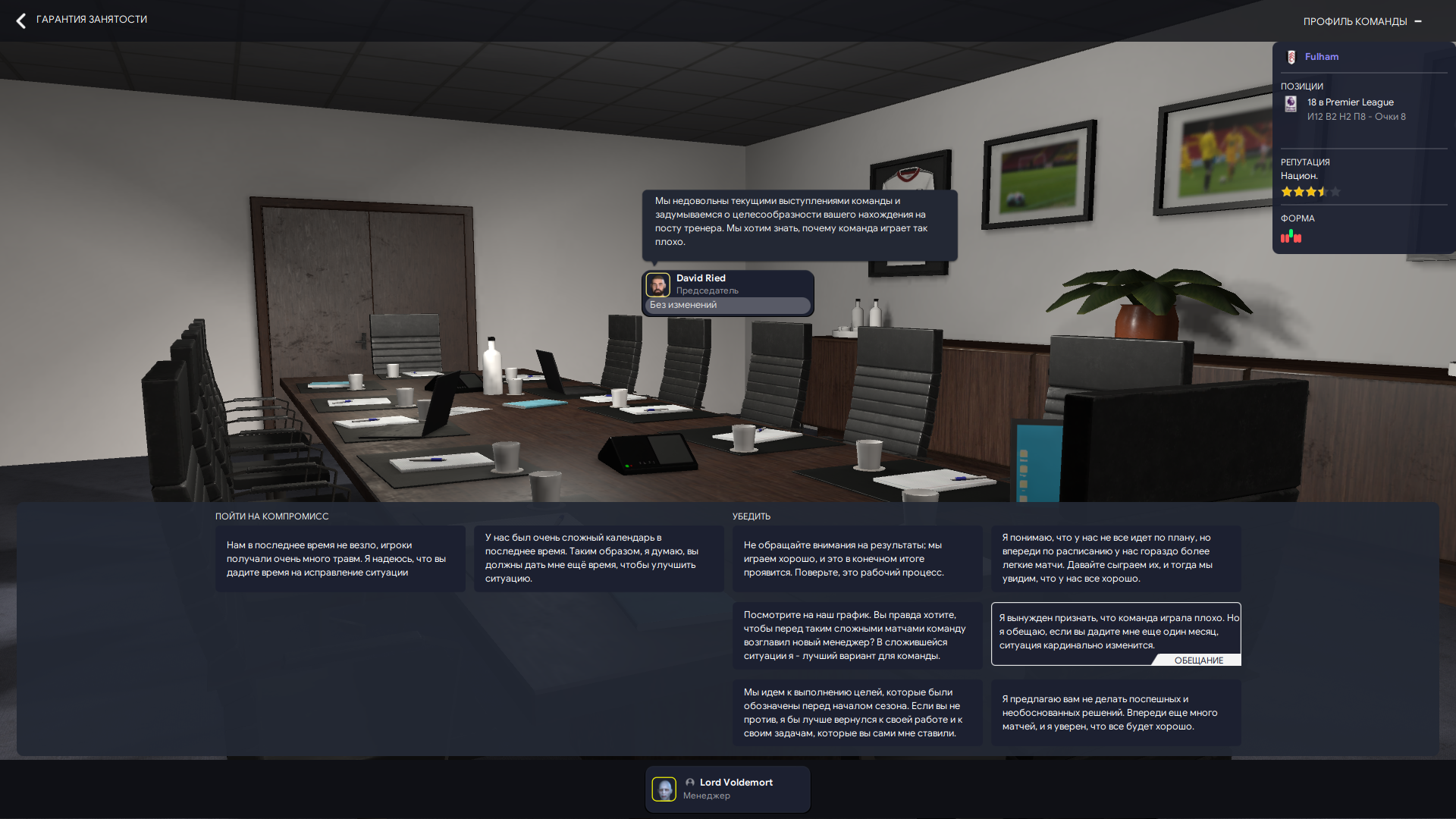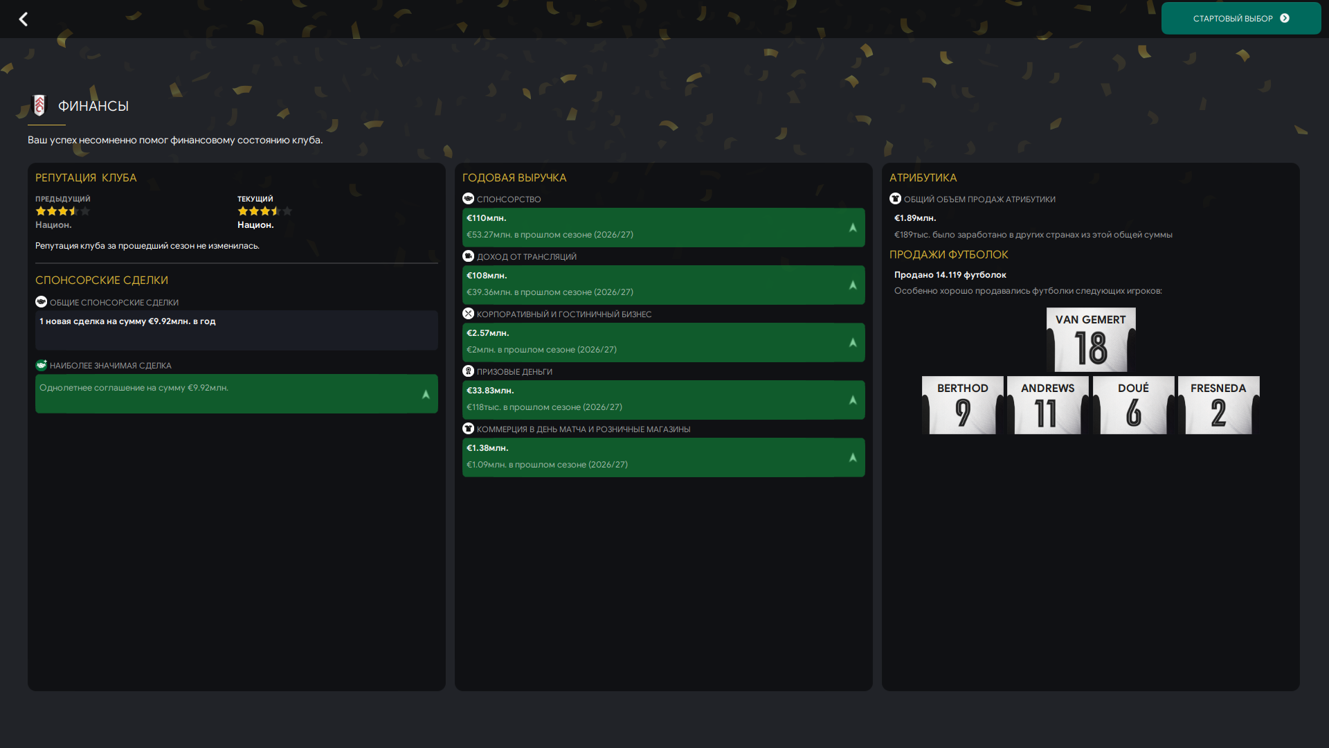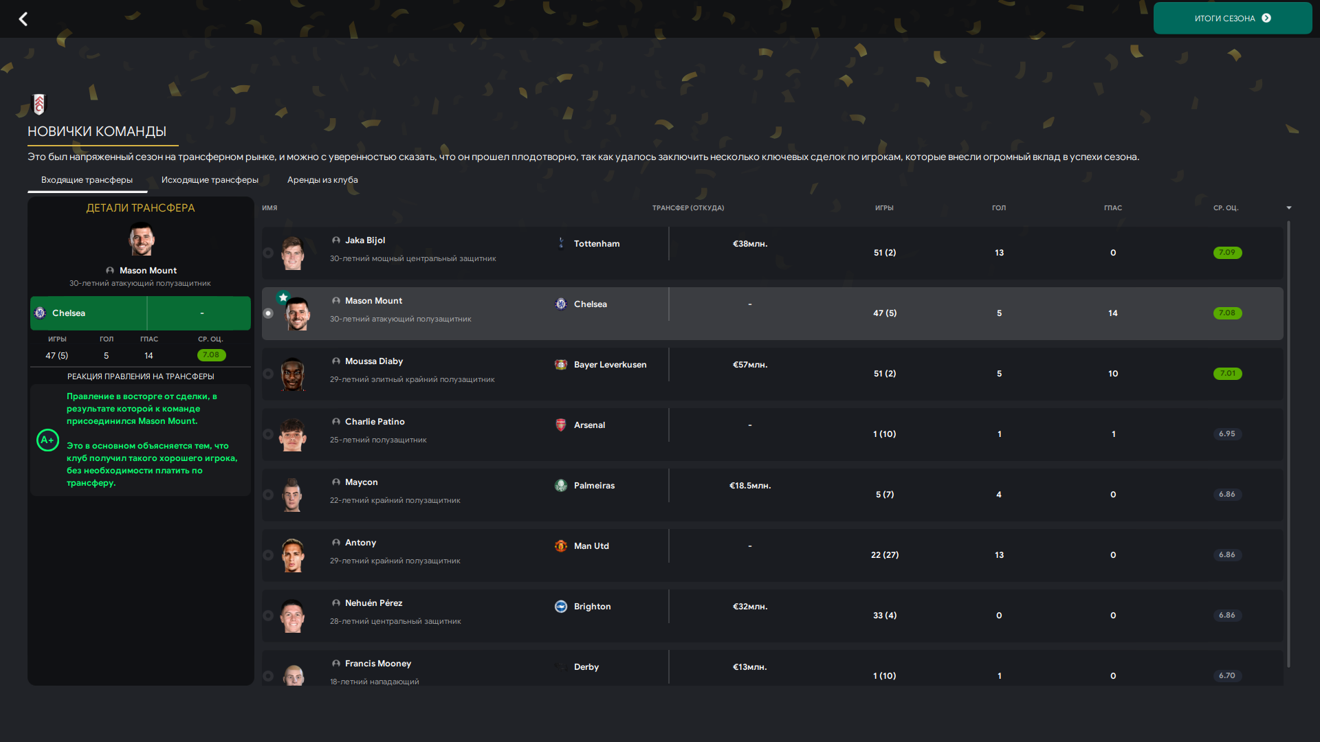 Оказывается, нас стали считать элитой из АПЛ только когда опубликовалось расписание и скрипт щёлкнул именно тогда, подкинув нам репутацию, как я понял. Именно после этого стали доступны многие игроки на рынке и вообще рынок обогатился, всё супер, если бы не одно но...