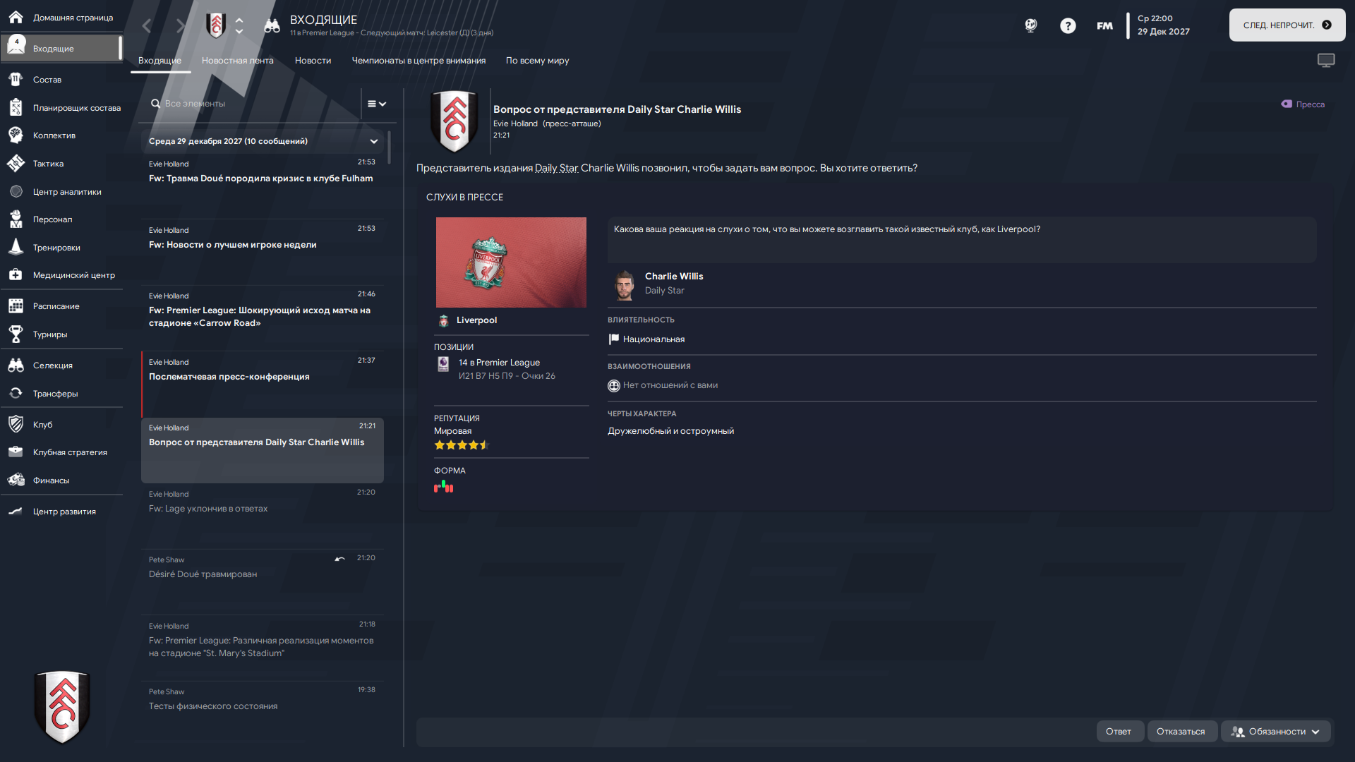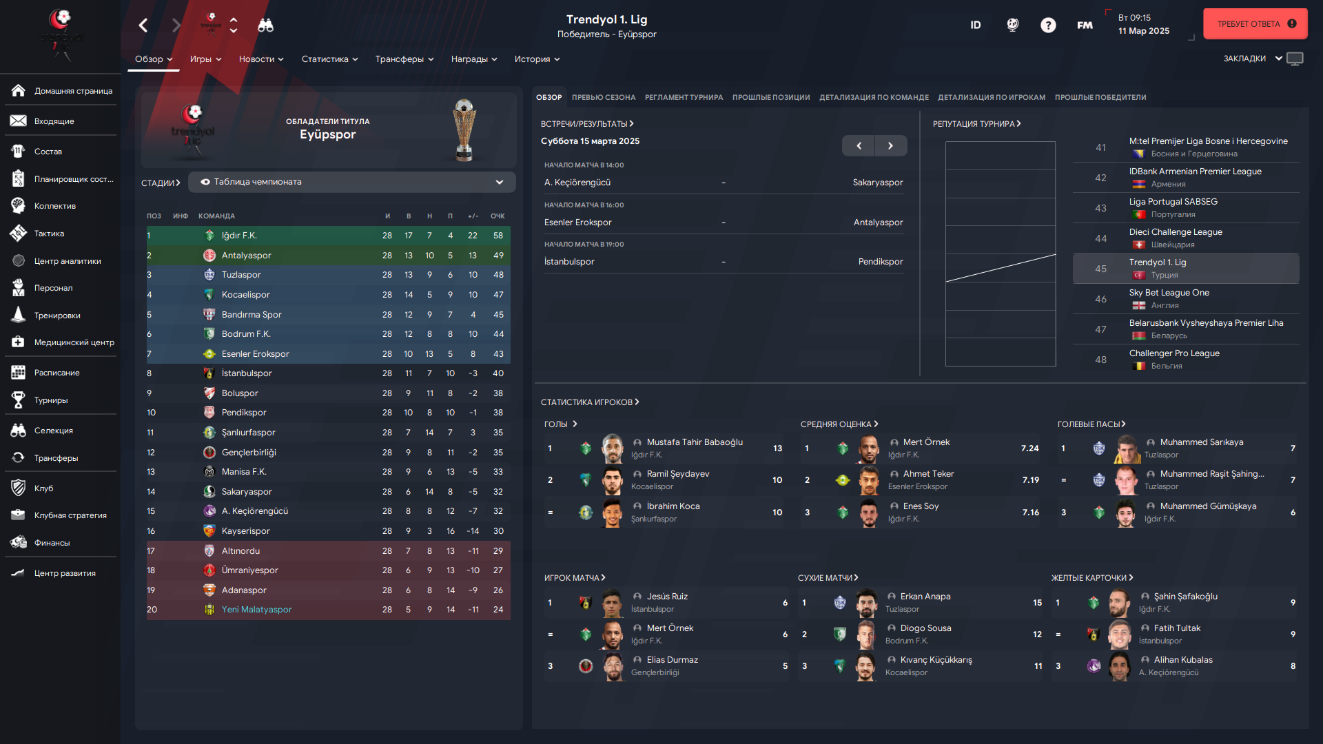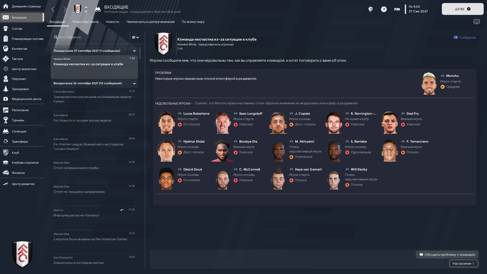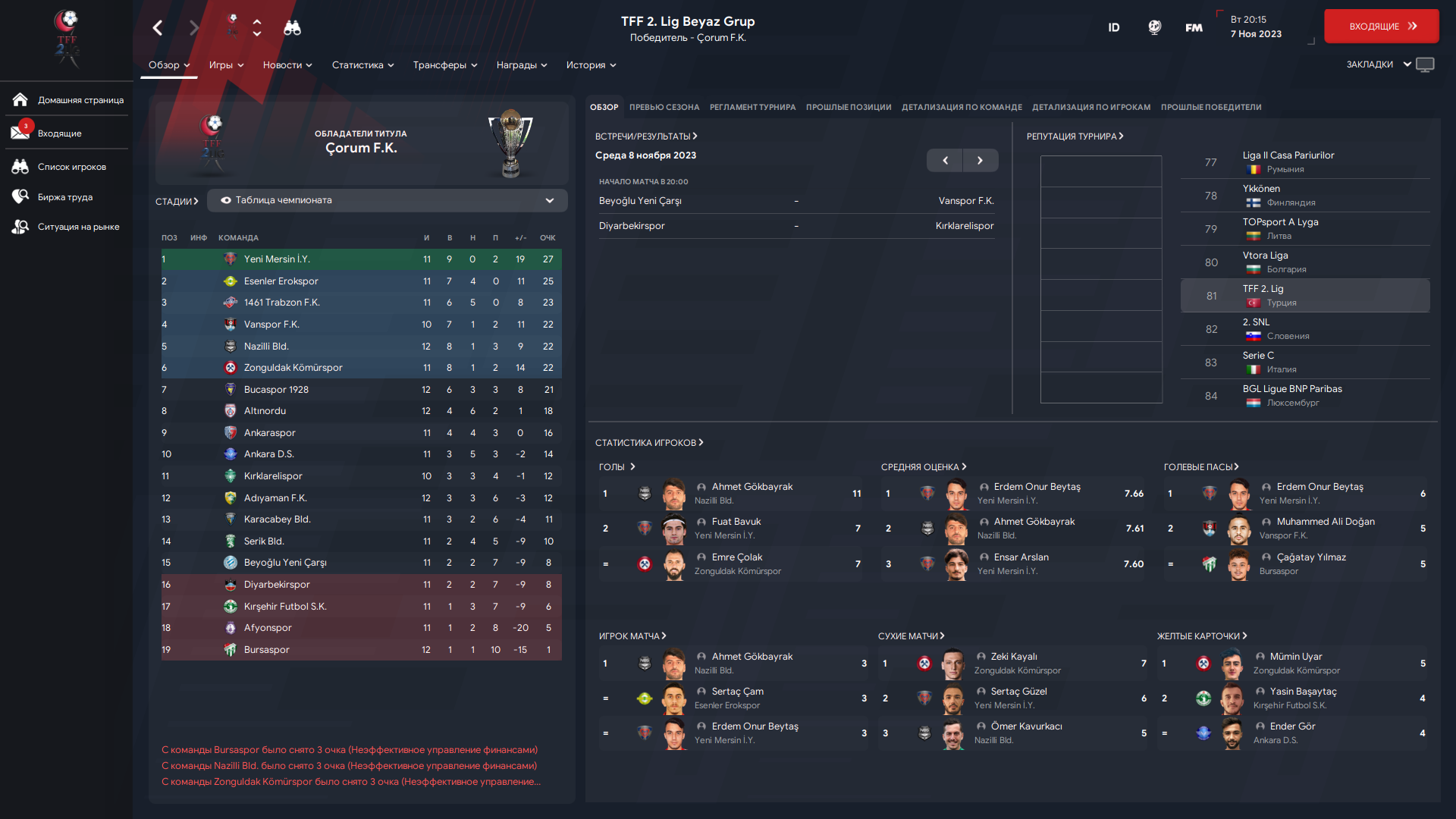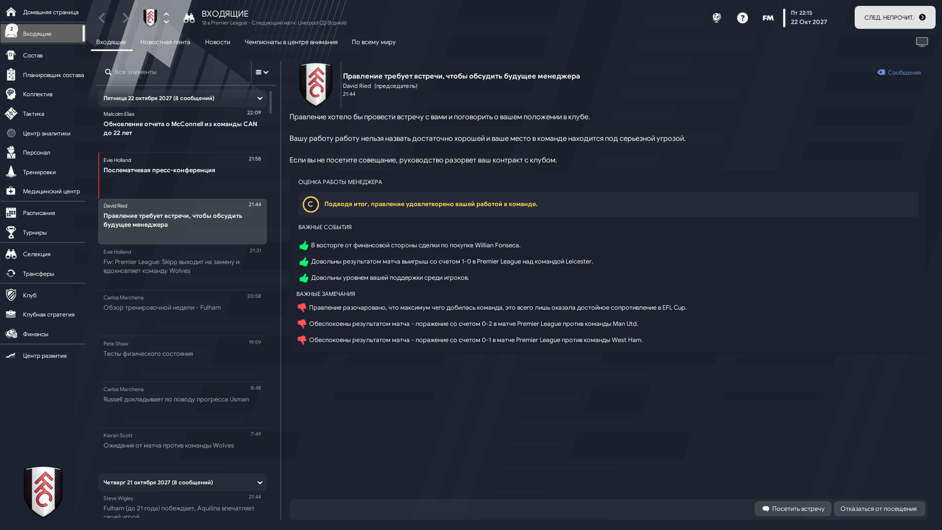 Оказывается, нас стали считать элитой из АПЛ только когда опубликовалось расписание и скрипт щёлкнул именно тогда, подкинув нам репутацию, как я понял. Именно после этого стали доступны многие игроки на рынке и вообще рынок обогатился, всё супер, если бы не одно но...