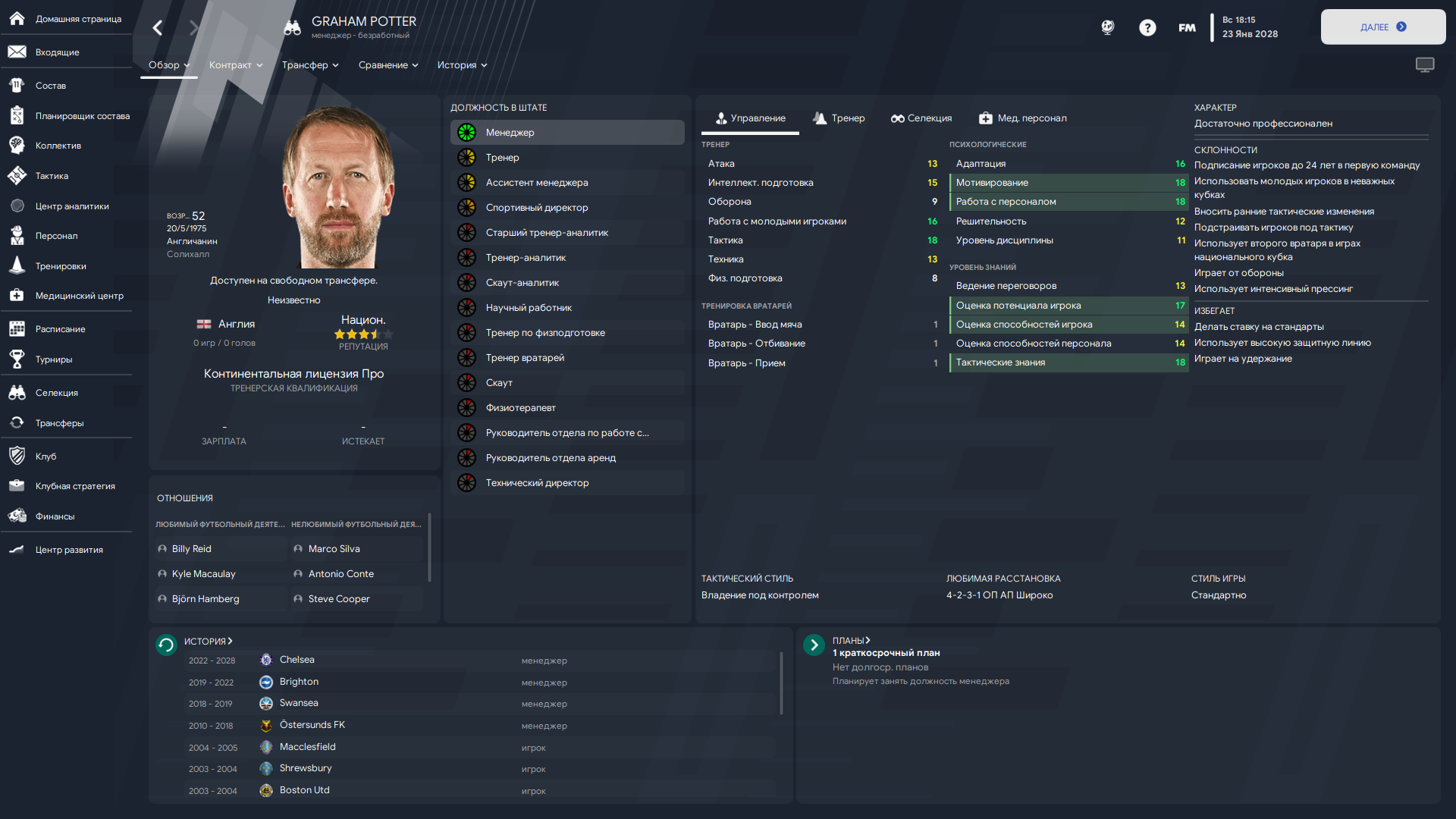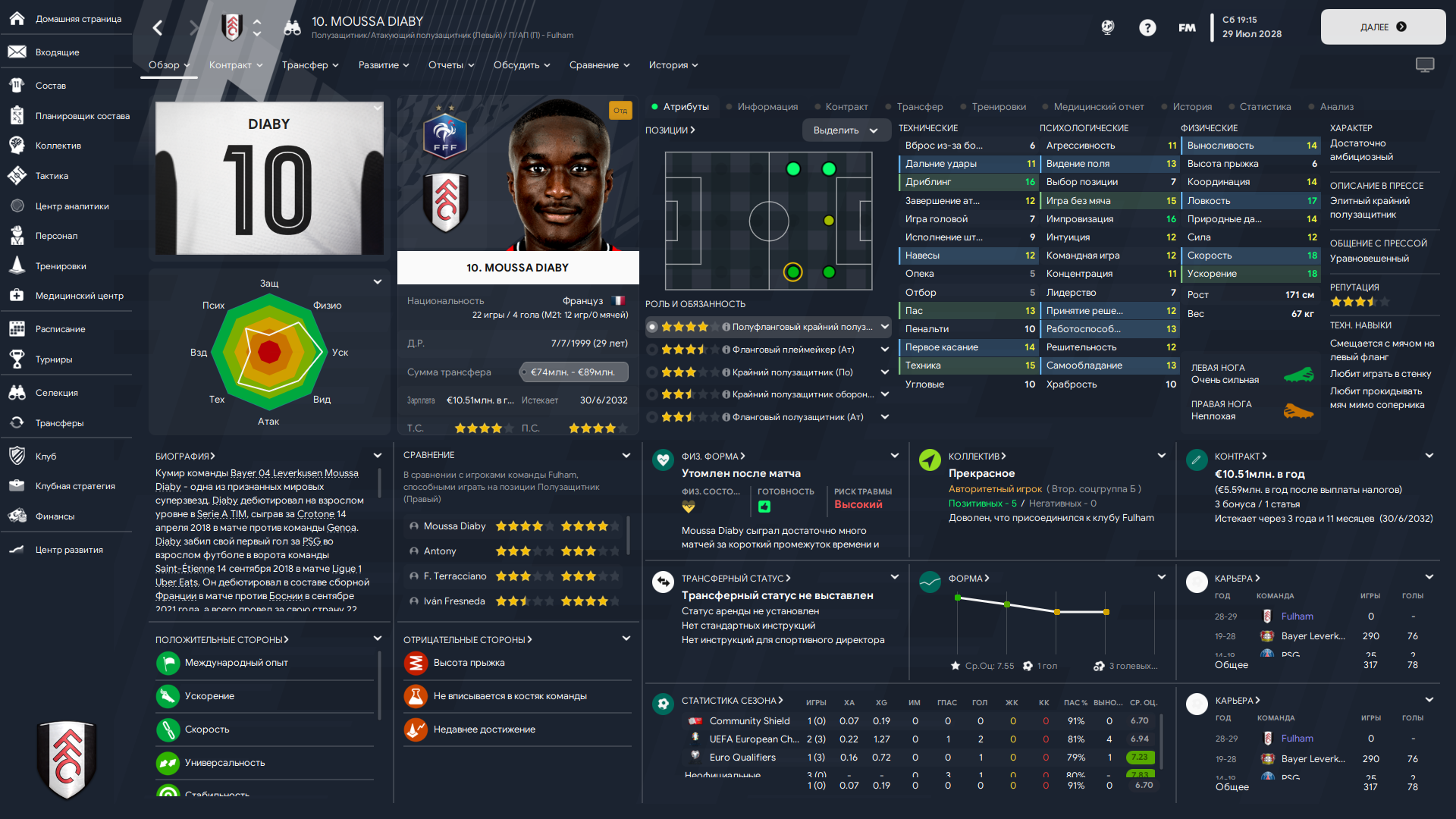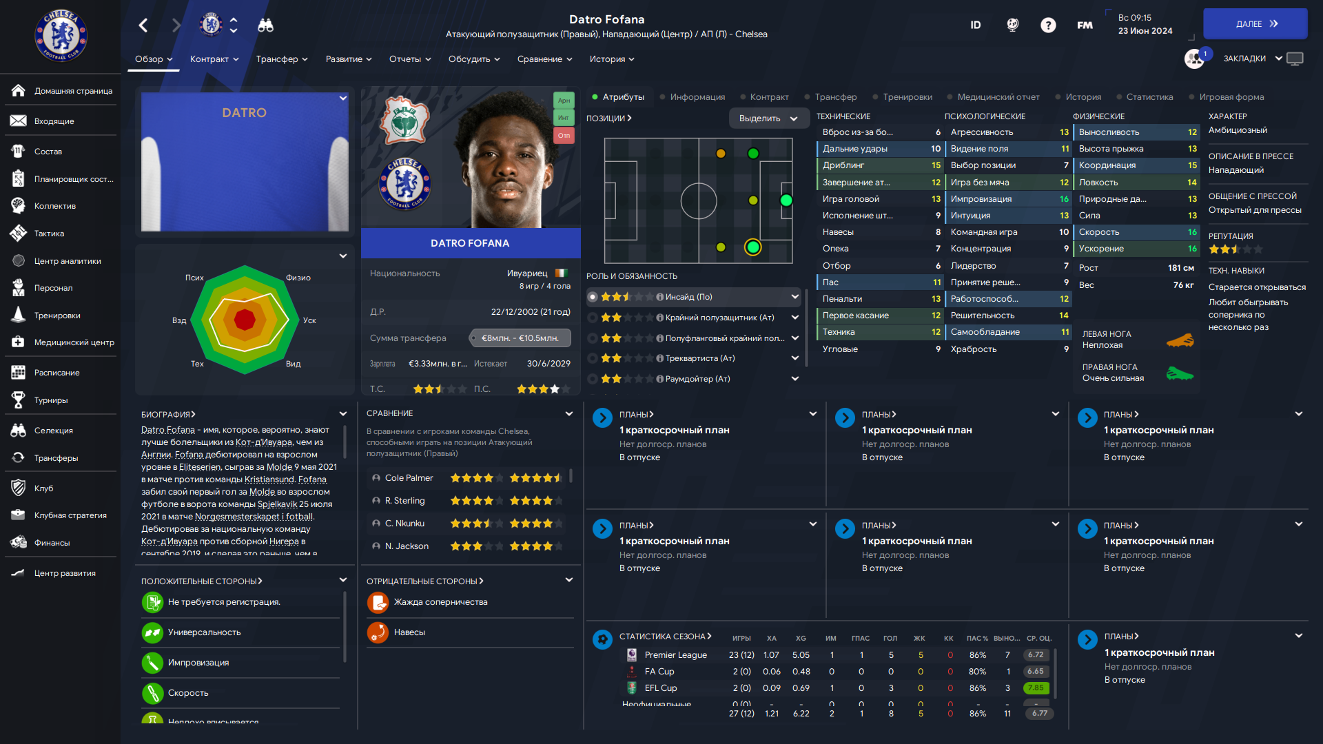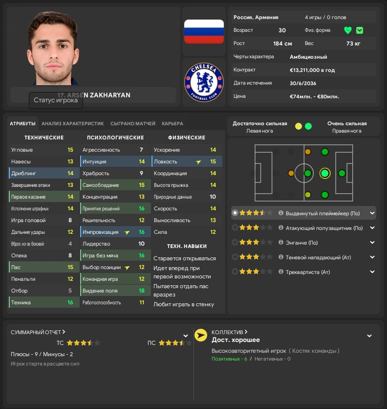 пик 1 смешно, но вот этот Аладдин наш основной левый фланговый защитник. почему так? да хуй его знает. кроме него нет никого вообще. если вдруг сломают, придется перходить на схему с тремя центральными. поэтому вставляем палец в жопу (на удачу) и молимся, чтобы этот чумазенький не траванулся кебабом или не подорвал себя поясом шахида в лондоском метро пик 2 старый знакомый. два сезона побегал у меня в лацио. был молодцом. забивал, отдавал, не ломался. ушел в Челси за хороший прайс сейчас в принципе продолжает строить игру. если поддавшись моде не убежит к шейхам, доведу его до почетного выхода на пенсию пик 3 в представлении не нуждается. человек в честь которого организуются товарищеские матчи. в мою короткую бытность тренером - лучший бомбардир команды. один из китов на которых держится Челси и просто красава. спасибо что есть. пик 4 в футбольном смысле недееспособный пидорас с средней оценкой 6.2 в последних пяти играх. почему он продолжает выходить на поле и вообще числится в списках клуба? у него есть скиллы и я почему-то верю в то что он когда-нибудь внесёт импакт. пока что просто мертвая душа. просто есть чтобы был. если защитники соперника отвлекаются на него и стягиваются, то хотя бы за это ему спасибо. стоят ли его услуги 5 с гаком миллионов в год? да ну нахуй. будет с нами пока я не соберу костяк новой команды