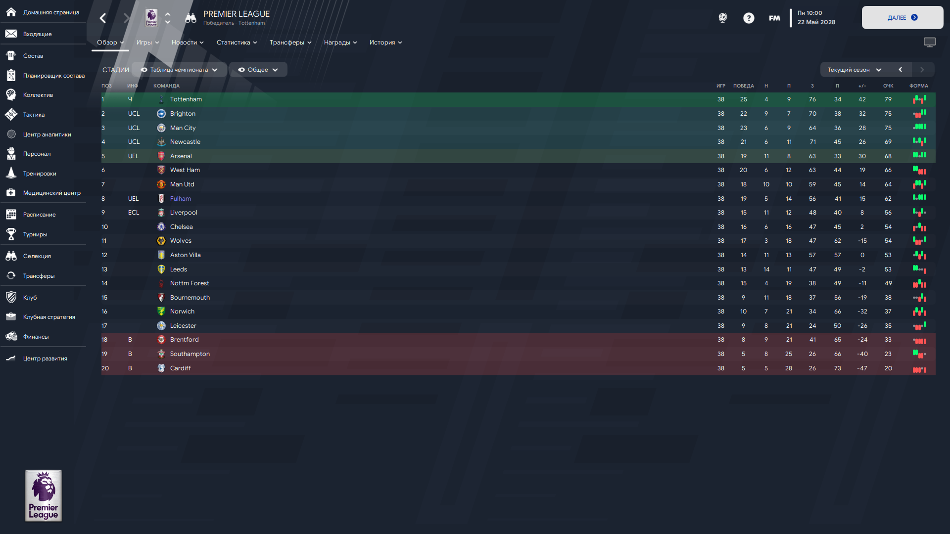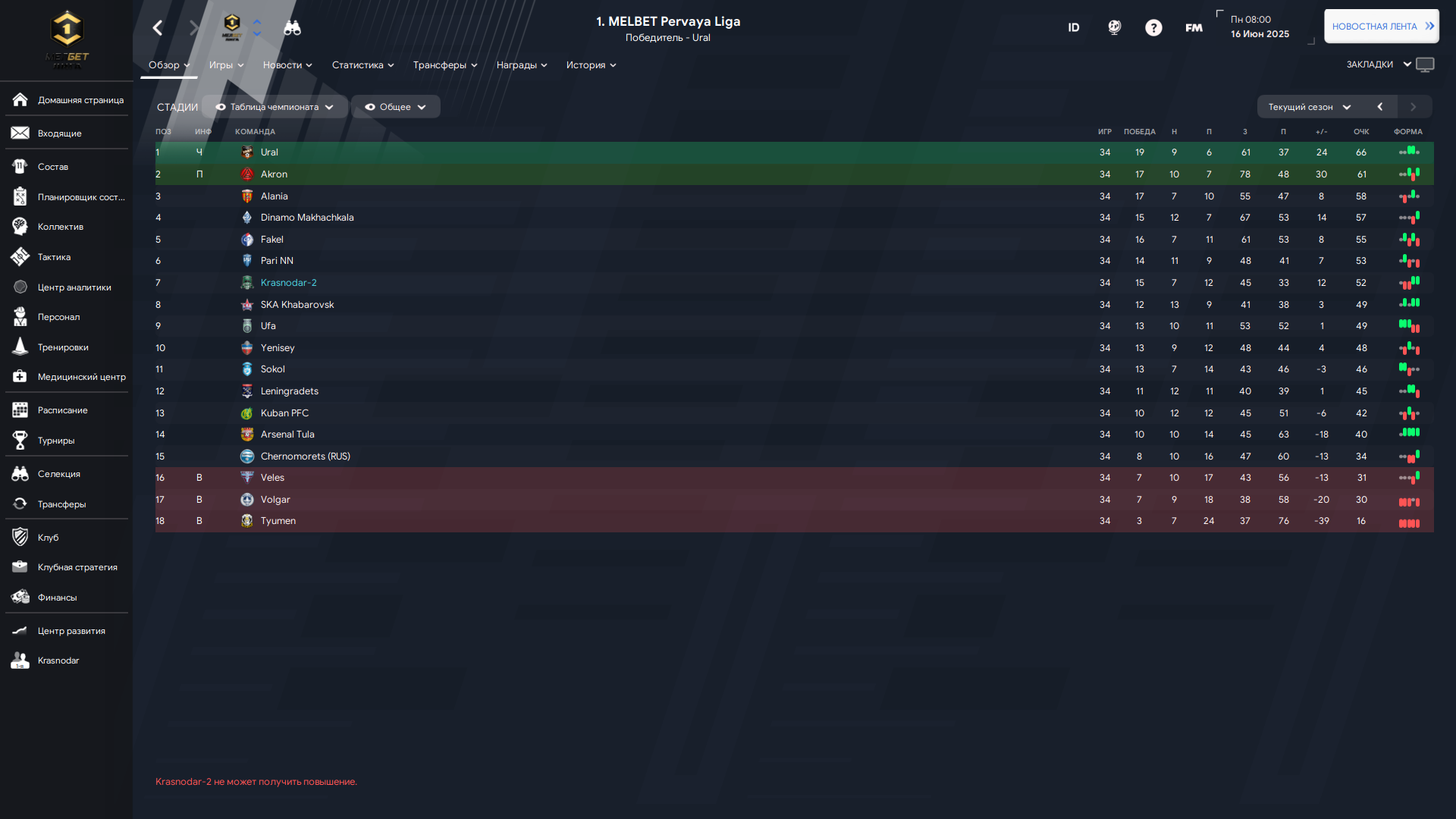 Задача на сезон выполнена - мы взяли первое место и путёвку в АПЛ, успех. Дальше будет тяжело, учитывая, что руководство метит в середину таблицы с первого же захода, ух.