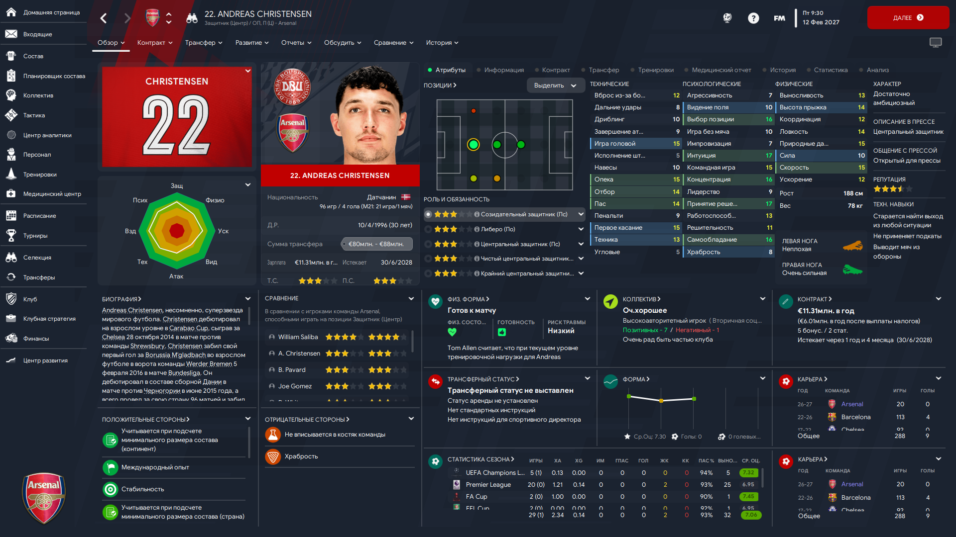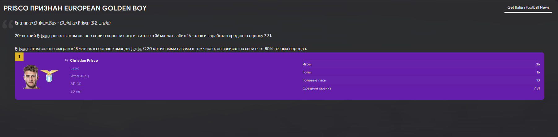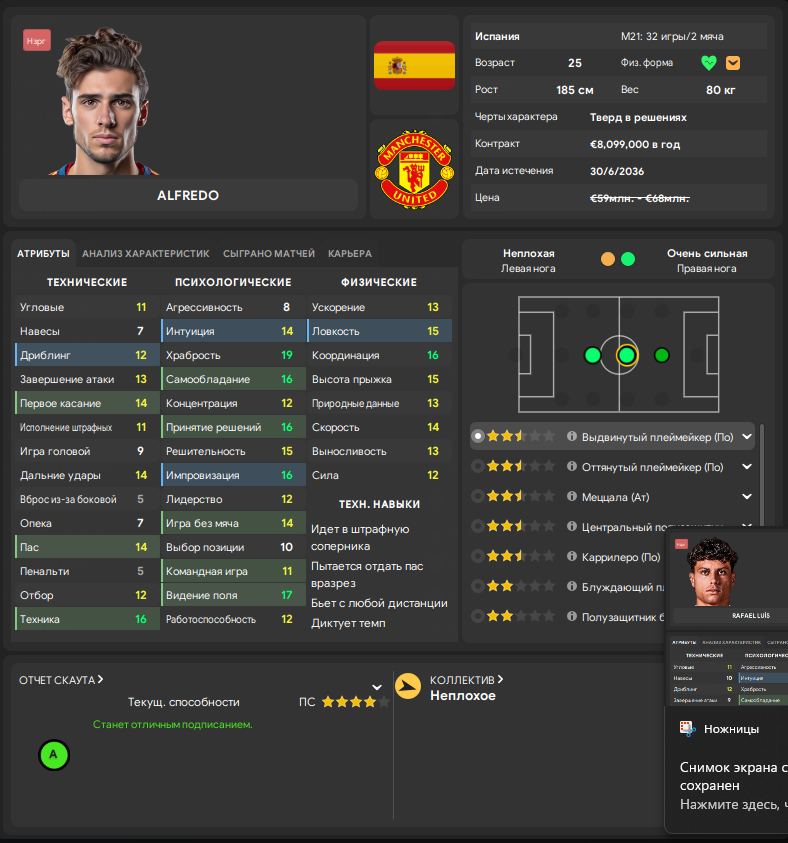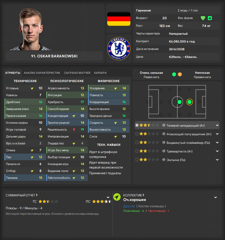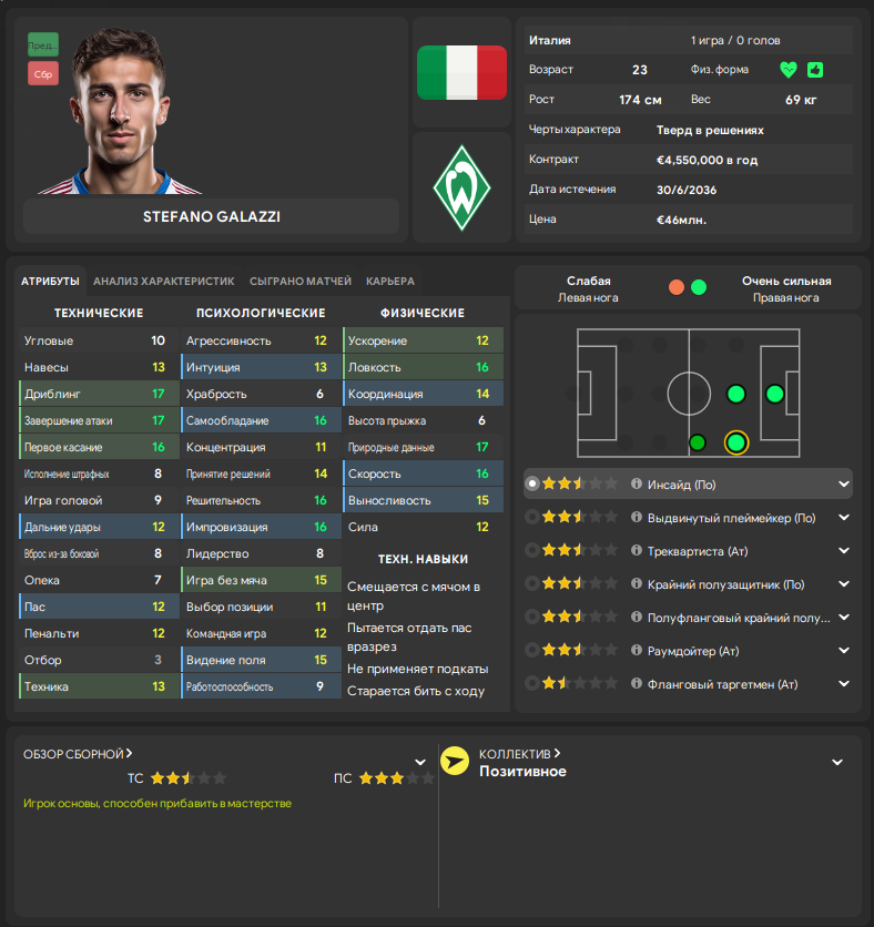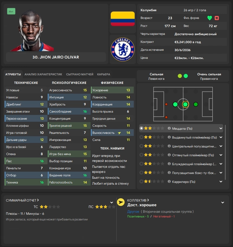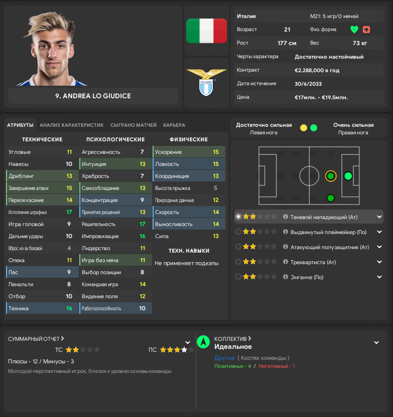 за этим пик 1 красавой каждое ТО выстраивается очередь из наивных европейских грандов. каждый офер - это смешные цифры в выплатах и куча статей с невыполнимыми бонусами. на что рассчитывают - неизвестно. по скиллам не самый сильный в составе, фактически выходит с банки или в основе против мусора. по ощущениям - сильнейший игрок в команде. каждый матч - бенефис. не уходит без голевого действия. видимо таит обиду и посему отказывается подмахнуть улучшенный контракт. ближе к экватору сезона буду пытаться слить хотя бы за сотку. пик 2 перекочевал из Арсенала за 11 млн. сразу согласился на роль резервиста. по скиллам вроде не вау, но хуярит с обеих ног + закрывает каждую позицию в нападении на уровне прирожденный/уверенный. для ротации годится. тоже кстати имеет двойное гражданство аргентина/италия. Барози был выписан из Милана за 25 млн не потому что был нужен, а просто чтобы насрать Милану. судя по отчету скаута он часто выходил и вносил импакт. 20+ матчей в старте, средняя оценка 7.01. от нас наверное будет кататься по арендам т.к. острой нужды в нем нет. ну и результаты текущего сезона