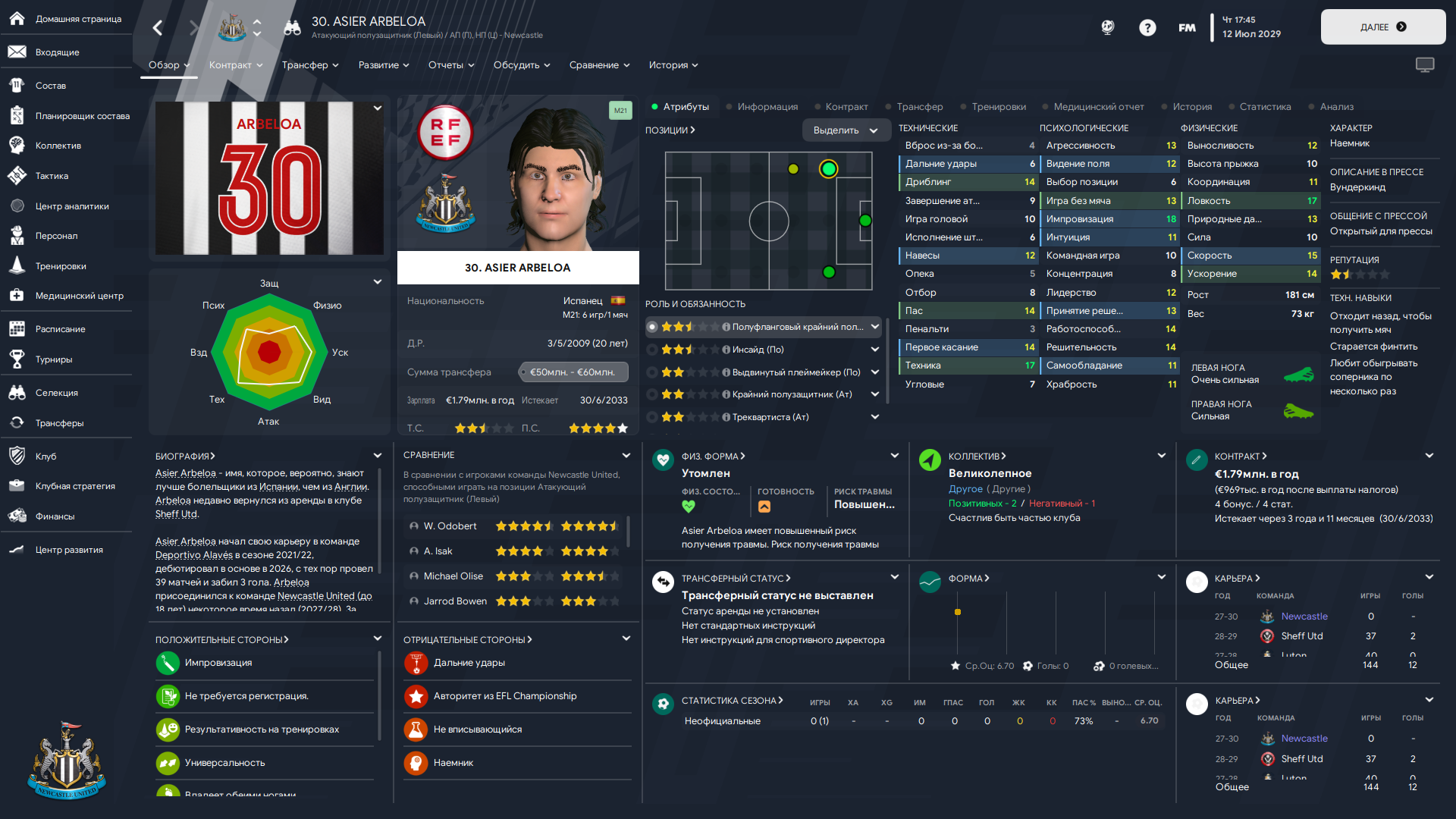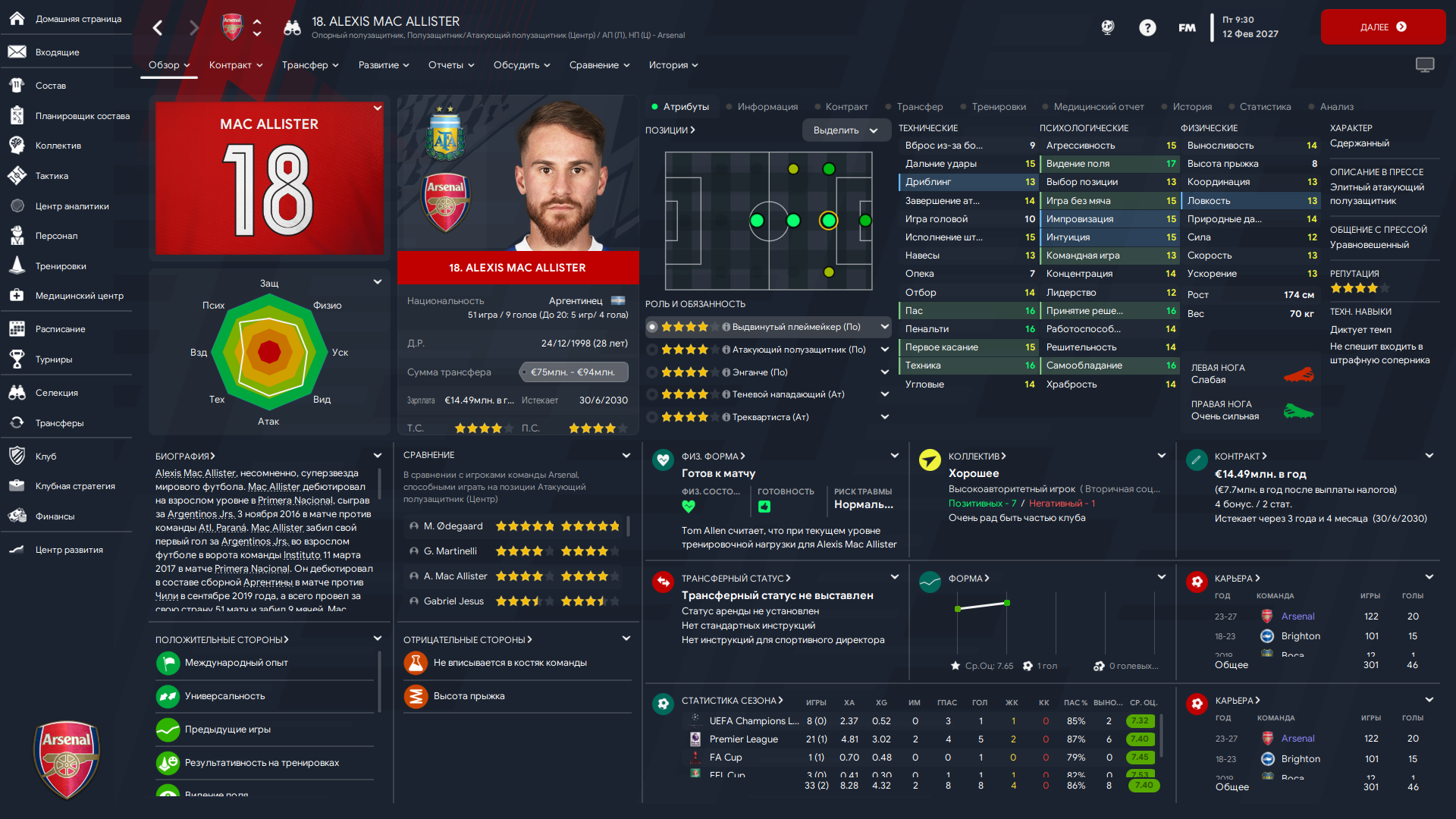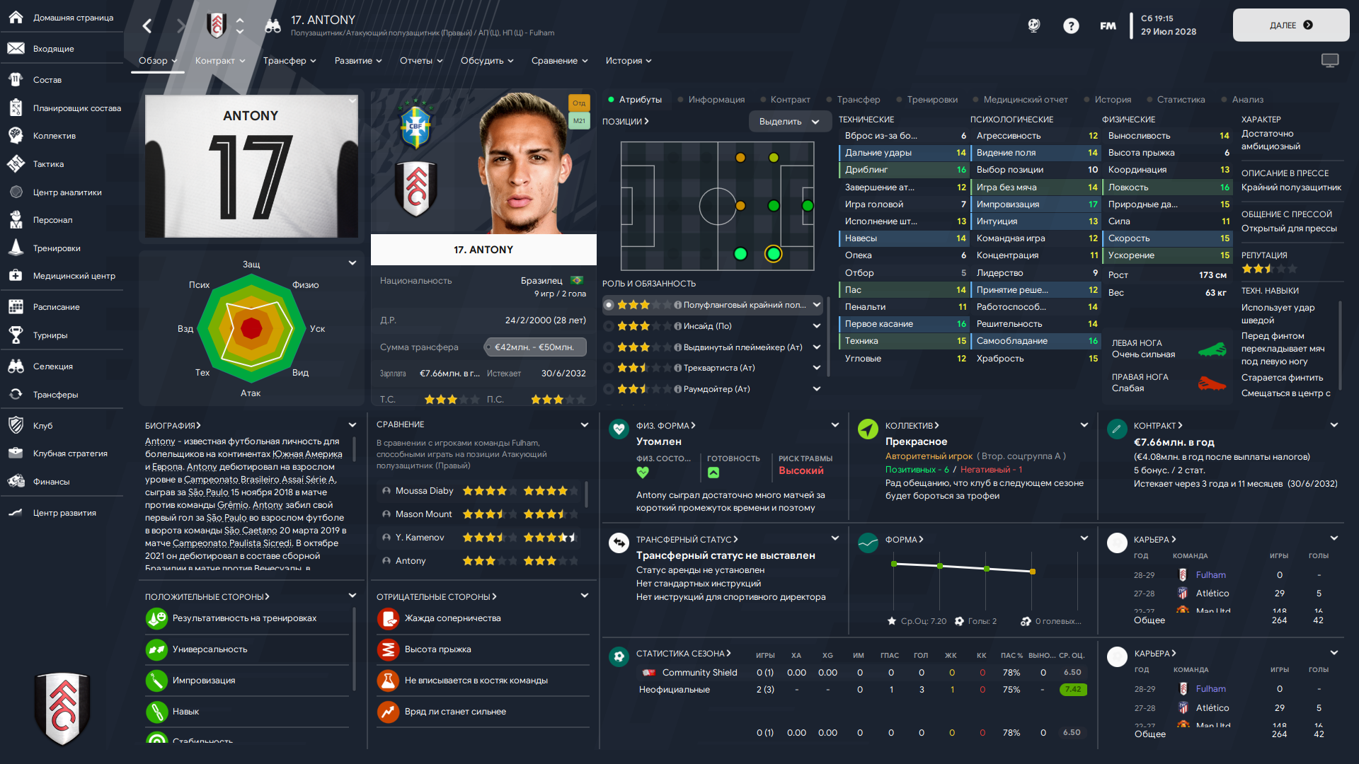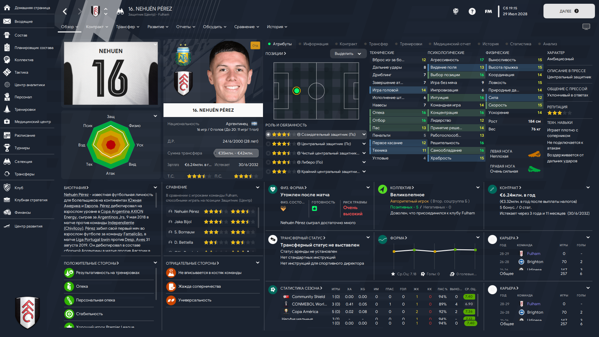 за этим пик 1 красавой каждое ТО выстраивается очередь из наивных европейских грандов. каждый офер - это смешные цифры в выплатах и куча статей с невыполнимыми бонусами. на что рассчитывают - неизвестно. по скиллам не самый сильный в составе, фактически выходит с банки или в основе против мусора. по ощущениям - сильнейший игрок в команде. каждый матч - бенефис. не уходит без голевого действия. видимо таит обиду и посему отказывается подмахнуть улучшенный контракт. ближе к экватору сезона буду пытаться слить хотя бы за сотку. пик 2 перекочевал из Арсенала за 11 млн. сразу согласился на роль резервиста. по скиллам вроде не вау, но хуярит с обеих ног + закрывает каждую позицию в нападении на уровне прирожденный/уверенный. для ротации годится. тоже кстати имеет двойное гражданство аргентина/италия. Барози был выписан из Милана за 25 млн не потому что был нужен, а просто чтобы насрать Милану. судя по отчету скаута он часто выходил и вносил импакт. 20+ матчей в старте, средняя оценка 7.01. от нас наверное будет кататься по арендам т.к. острой нужды в нем нет. ну и результаты текущего сезона