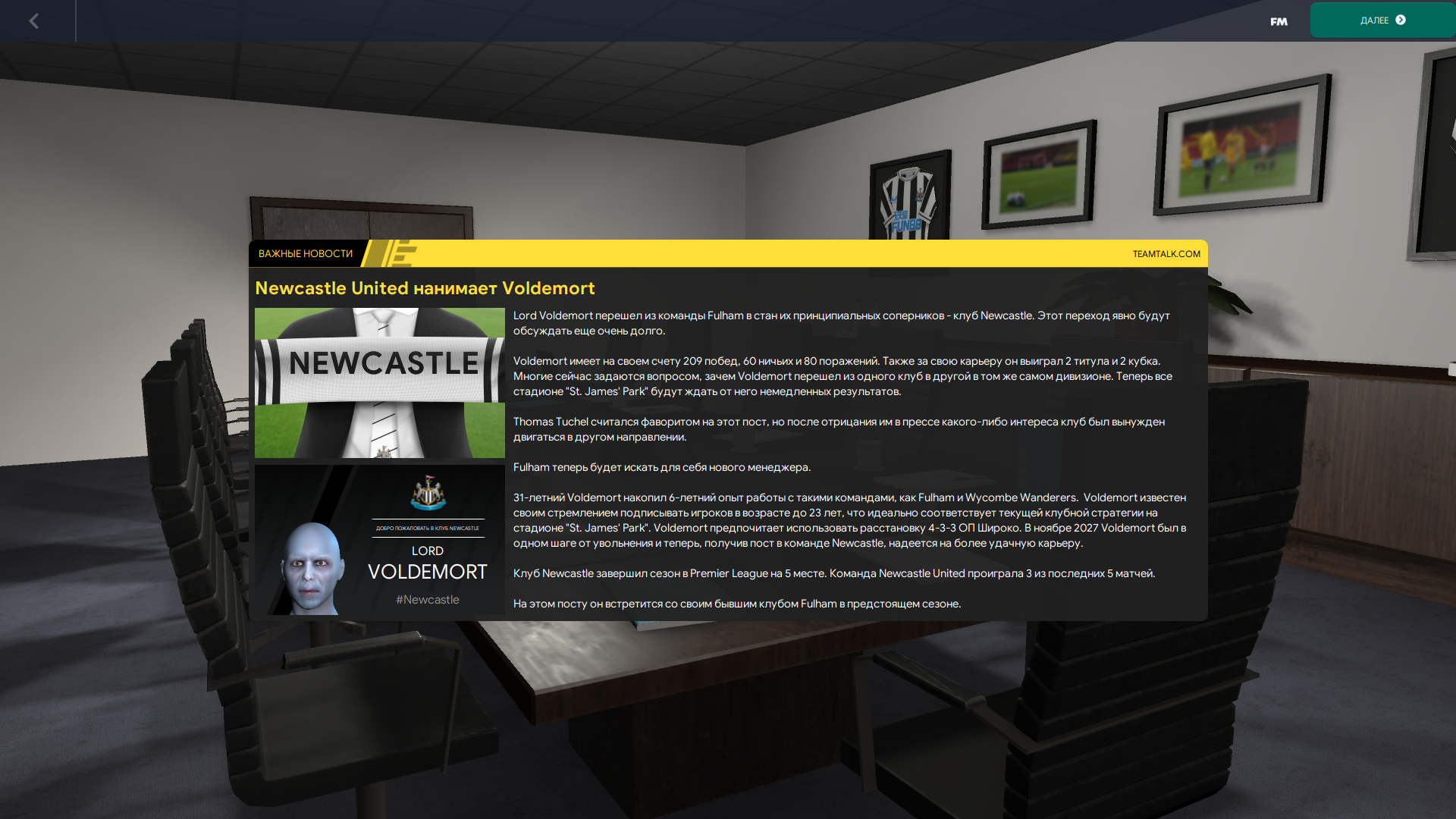 - Охуеть. Подытожил Тёмный Лорд и подписал контракт с трансферным бюджетом в 245 миллионов евро для выхода из Чемпионшипа с первого места.
