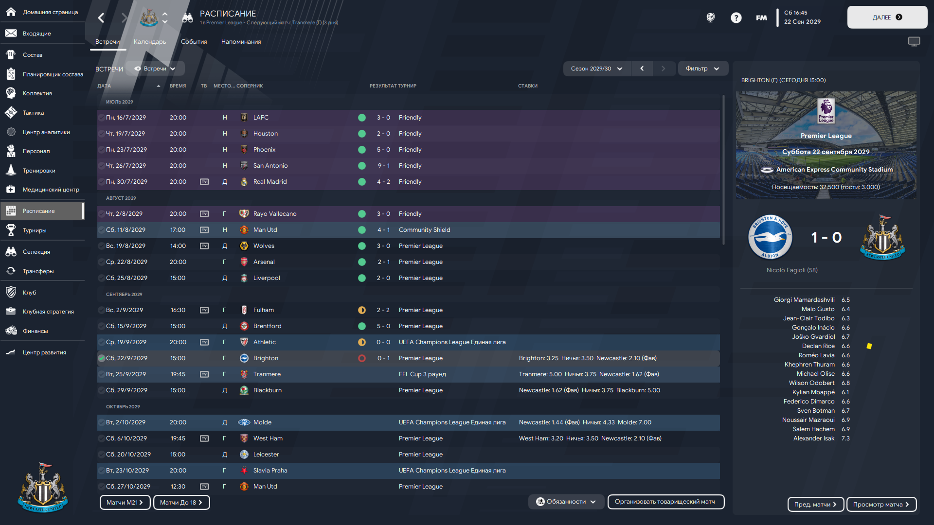новый сезон стартовал, а команду пришлось собирать из того что было. в дополнение к уже купленным Андрэу и Боччи, из Ньюкасла за 43 миллиона переманили нигру пик 1 по фамилии Бутерброд. Бутерброд может сыграть как в защите, так и в опорке. мне он собственно нужен больше как опорник. на этом трансферы всё. остальное подспорье вытягивал из молодёжки. там уже ранее упомянутые Гэррити и актёр турецких сериалов. это не все "новички", но самые примечательные. матчей впереди уйма, игрового времени хватит всем. чемпионат бензоколонки просто заебал. каждый день летят оферы после которых мои жадные до денег ублюдки начинают мошнить и раскачивать лодку. пока что получается откусываться абузя диалог о "нереалистичной цене" которую они предлагают. игрок предлагает назвать свою и я называю по-настоящему нереалистичную)))))))))))))))))) после чего бедуины сливаются с переговоров, а болванчик остаётся в команде ждать соразмерного предложения (которое никогда не поступит). по предсезонке я так и не понял на что нам рассчитывать, зато вот в первом туре выиграли дерби!