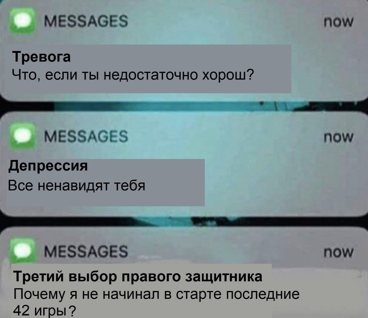 Какой же цирк нахуй, каждую неделю по травме, и все долгие, хорошо начали, а теперь сливаем из-за травм вечных блять, придётся ливнуть в скором времени и мне, видимо, чтоб репутацию не потерять. Я не виноват, это пиздец.