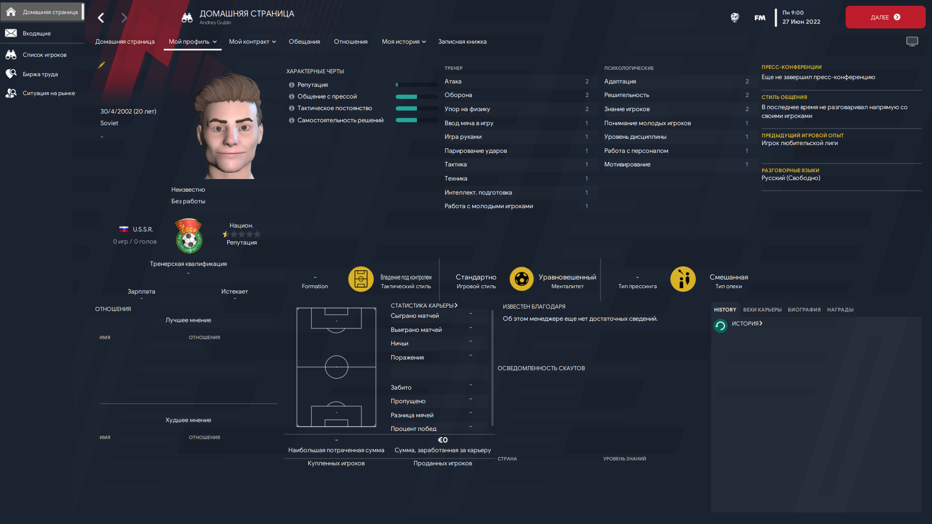 Ладно, в том сейве я хоть и дошёл до прошки и 40 процентов репутации, но наиграл за 5 лет 50 матчей, какая-то смешная карьера с постоянными отставками, поэтому проект Святогор Булочкин закрыт!