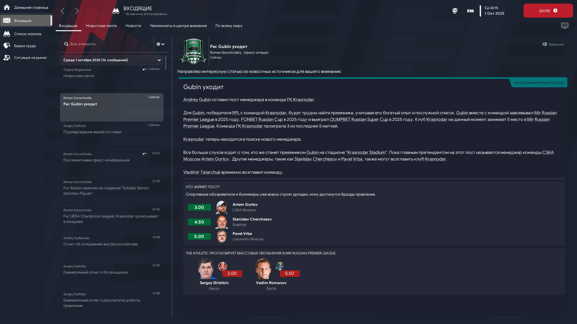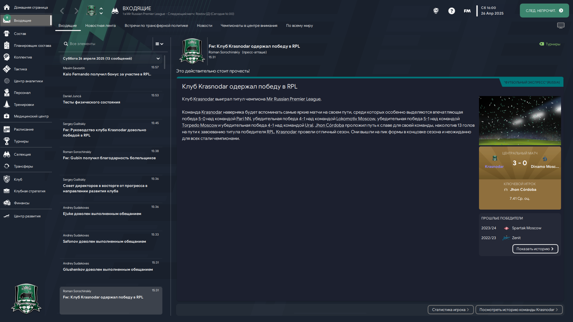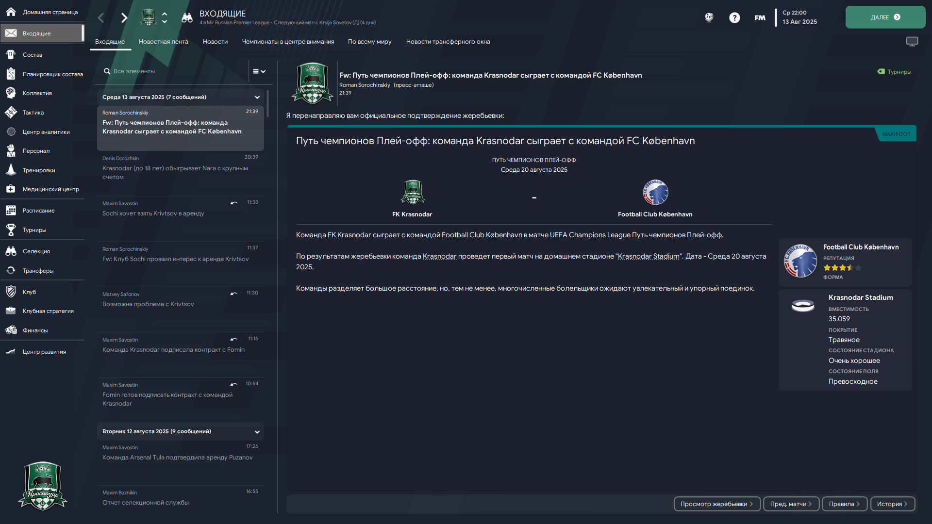 Принимаем дубль Краснодара, многого от нас не требуют - просто не вылететь. Будем фармить лицензии, сколько Галицкий будет готов оплачивать и потом, надеюсь, пойдём на повышение.