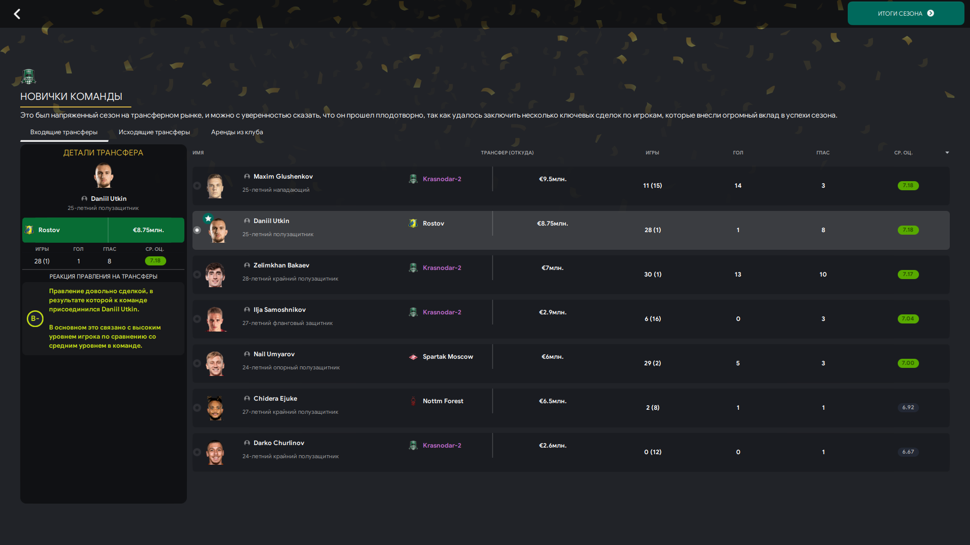 а к орлам на следующий сезон подъезжают вот эти красавы. трансферы согласованы, вэлком ёпт. второй болванчик кстати мой воспитанник и в ебаный Вердер уехал из-за моего проёба. когда прилетело предложение по аренде, на часах было начало пятого утра, я не заглянув в структуру выплат подмахнул эту аренду не заметив обязательный выкуп за 10 лямов. сами понимаете такого жеребца отдавать за десятку это преступление. годик попылил в немеции и едет обратно за минимальные отступные в 46.5 млн. получается музыканты крутанули меня дважды))))))))))