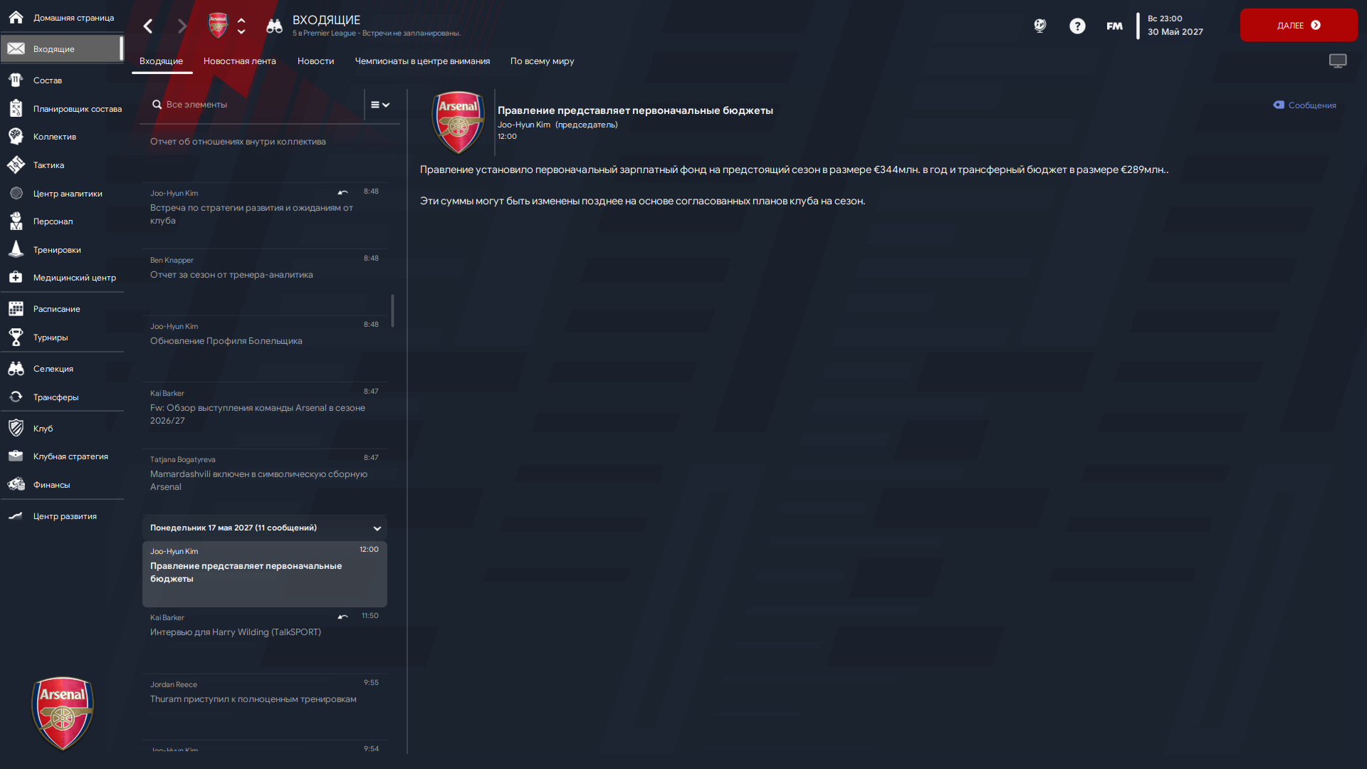 Я попросил увеличение трансферного бюджета на некст сезон - хуй, денег нет.
