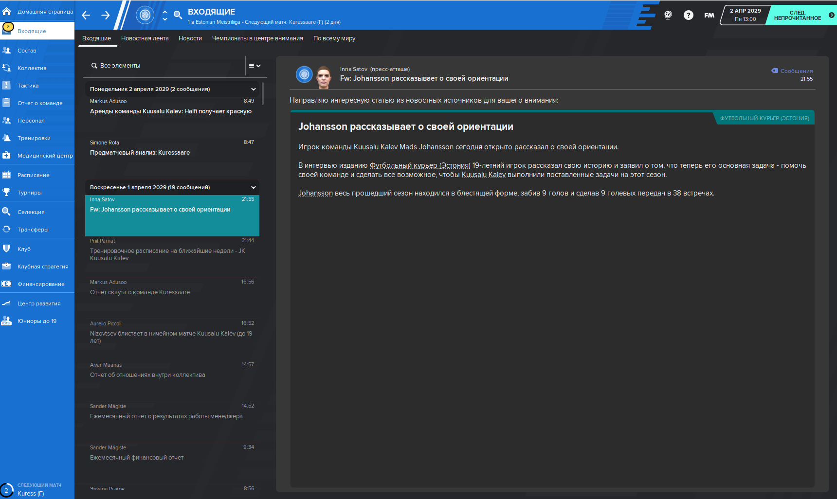 Надеюсь в следующем году уже будет совсем хороший интерес у неплохих клубов, сейчас был только Кальмар, всякие калы и молодёжки бельгийские, где не оплачивают лицензию.