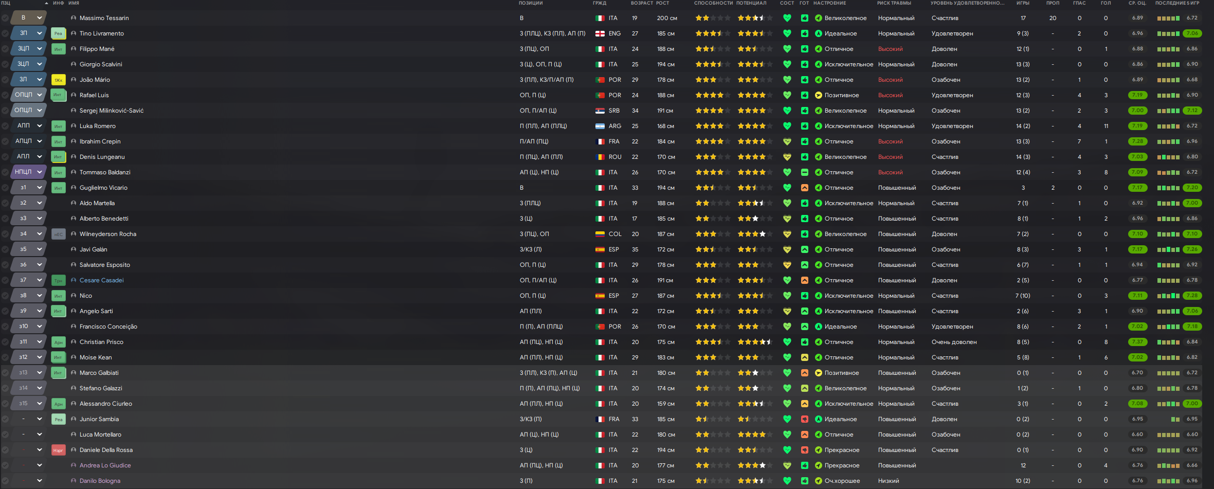 далее идет плеяда откровенного мусора/тех кто гниёт в арендах/ и каких-то просто типов ни туда ни. я люблю игроков способных закрыть сразу две-три позиции, а эти и по скиллам жиденько и по позициям аналогично. особенно тут нечего обозревать