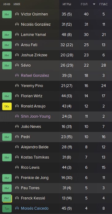 - Илир Берто (4) - я бы поставил троечку, затерялся он на фоне Хайе, но игра выделяет его как лучший трансфер, хм. 12 голов в 14 играх, в целом неплохо, если не вспоминать, что это крупнейший трансфер и мы заплатили 60 миллионов отступных, ладно уж, неплох всё равно.